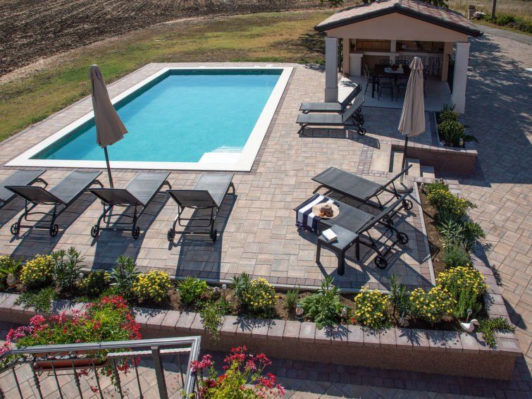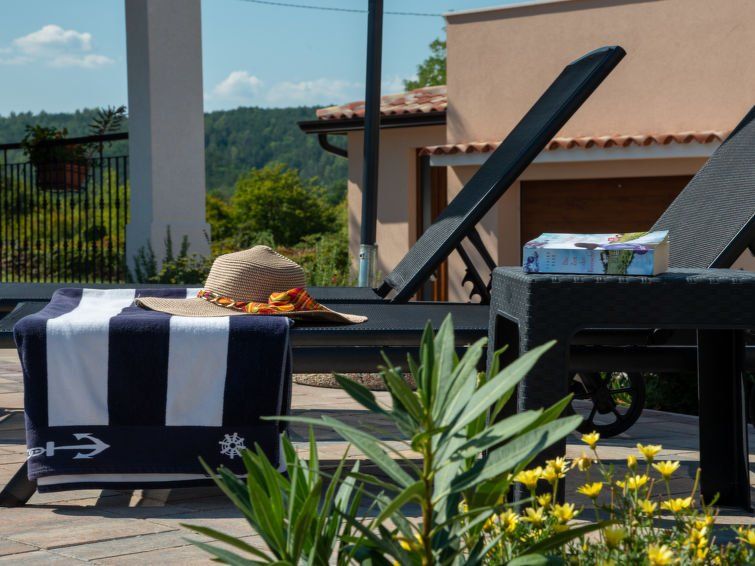7-room house 205 m2 on 2 levels. Living/dining room 45 m2 with satellite TV (flat screen), air conditioning. Exit to the terrace, to the swimming pool. Open kitchen (oven, dishwasher, 4 ceramic glass hob hotplates, kettle, microwave, freezer, electric coffee machine). Sep. WC. Upper floor: 1 room with 1 double bed (2 x 100 cm, length 200 cm), shower/WC and satellite TV (flat screen), air conditioning.