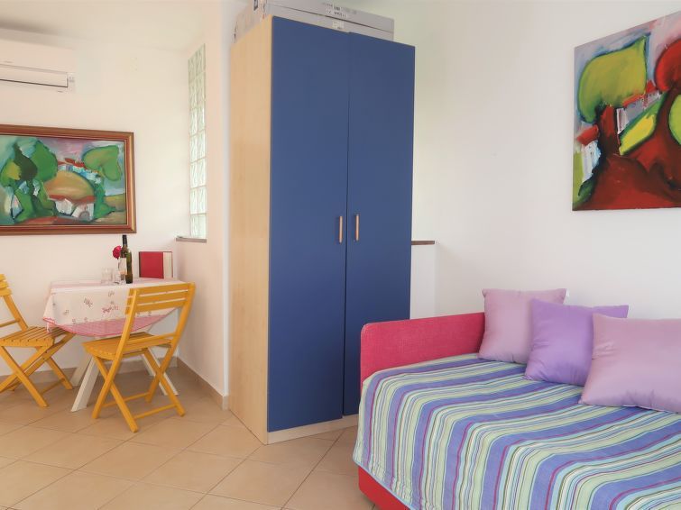 "Adalgisa", 1-room apartment 20 m2 on 1st floor. Studio with 1 double sofabed (2 x 80 cm, length 200 cm), satellite TV and air conditioning. Open kitchen (2 hot plates, toaster, kettle, microwave, electric coffee machine) with dining table. Shower/WC. Terrace 4 m2. Terrace furniture, barbecue (portable), deck chairs (2).