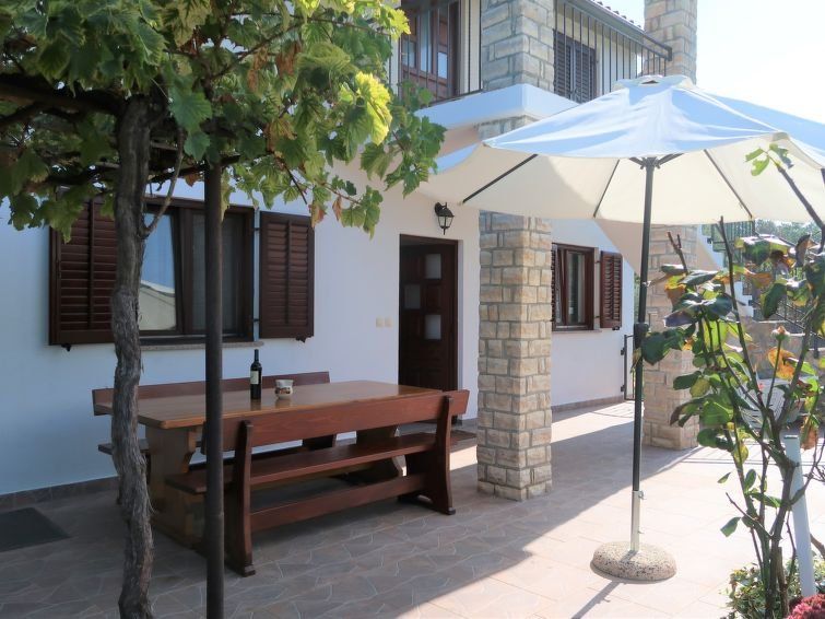 3-room house 56 m2. Living/dining room with 1 sofabed, satellite TV and air conditioning. Exit to the terrace. 1 room with 1 french bed. 1 room with 2 beds. Open kitchen (2 hot plates, oven, dishwasher, 2 gas rings, toaster, kettle, microwave, freezer, electric coffee machine). Shower/WC.