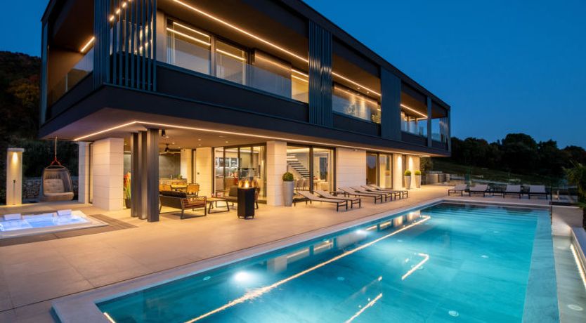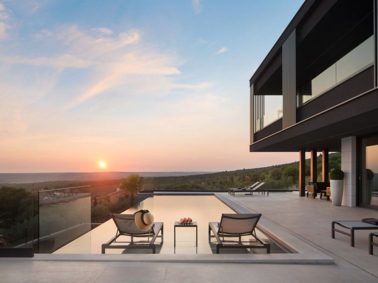 6-room villa 514 m2 on 2 levels. Spacious, luxurious furnishings: living/dining room with open-hearth fireplace and satellite TV (flat screen). Exit to the swimming pool. 1 room with 1 french bed (200 cm, length 210 cm), shower/WC and satellite TV (flat screen). Exit to the swimming pool.