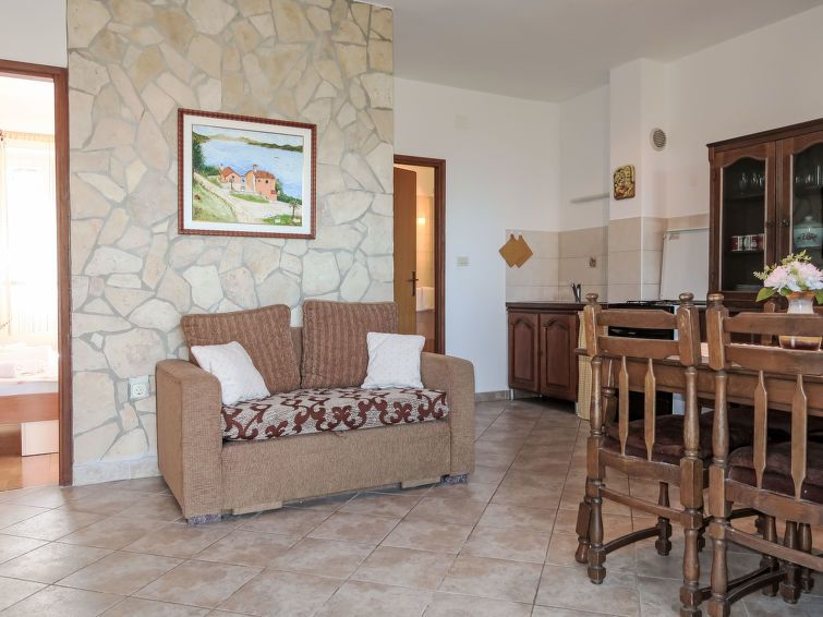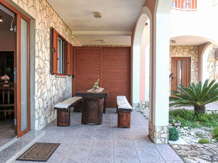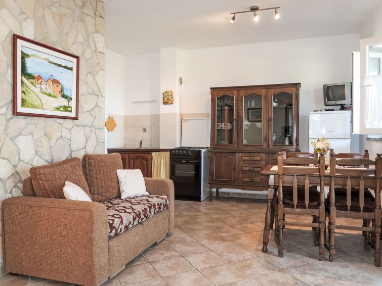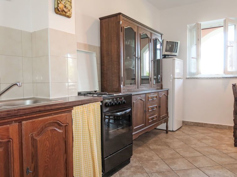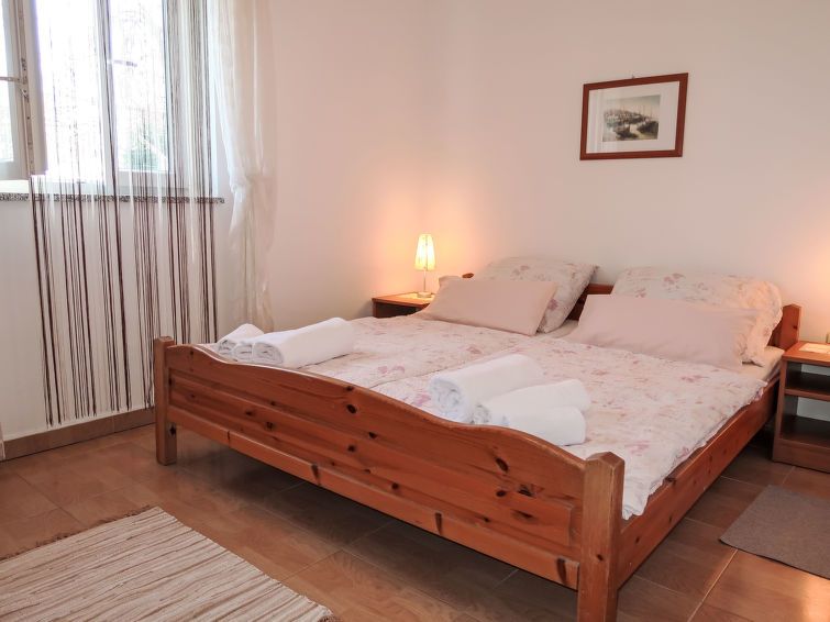 3-room apartment 56 m2, on the ground floor. Living/dining room with satellite TV and air conditioning. Exit to the terrace. 1 room with 2 beds (90 cm, length 200 cm). 1 room with 1 double bed (2 x 80 cm, length 200 cm). Open kitchen (2 hot plates, oven, 2 gas rings, toaster, kettle, microwave, freezer, electric coffee machine).