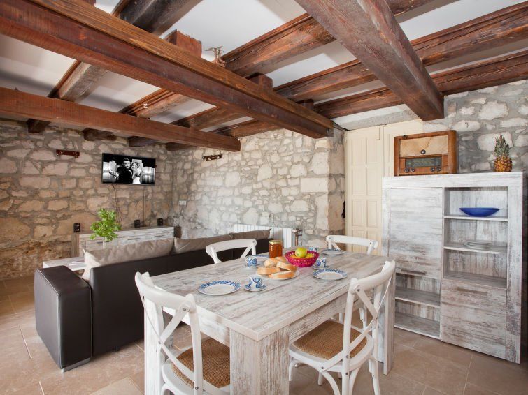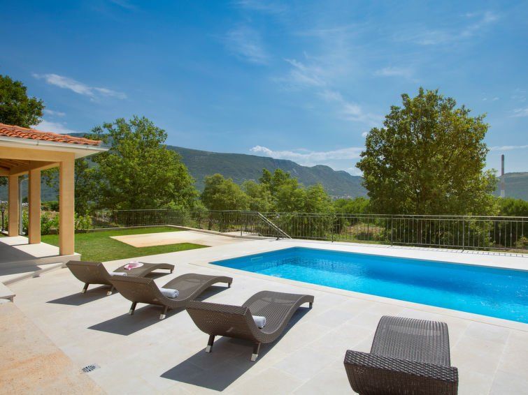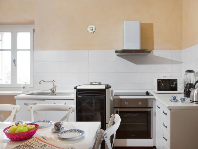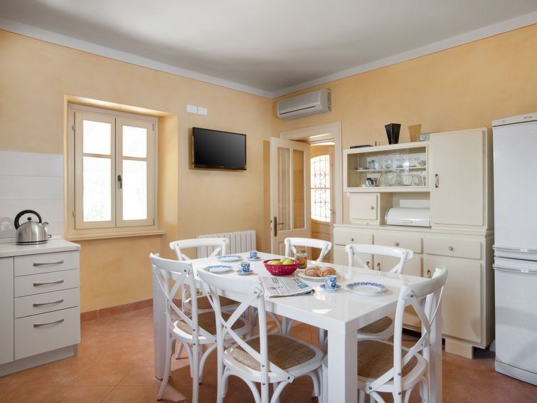 4-room house 138 m2 on 2 levels. Living/dining room with 1 double sofabed (160 cm, length 200 cm), open-hearth fireplace and satellite TV (flat screen). Exit to the terrace, to the swimming pool. Open kitchen (4 hot plates, oven, freezer). Shower/bidet/WC. Upper floor: (exterior staircase), 3 rooms, each room with 1 double bed (2 x 80 cm, length 200 cm), air conditioning.