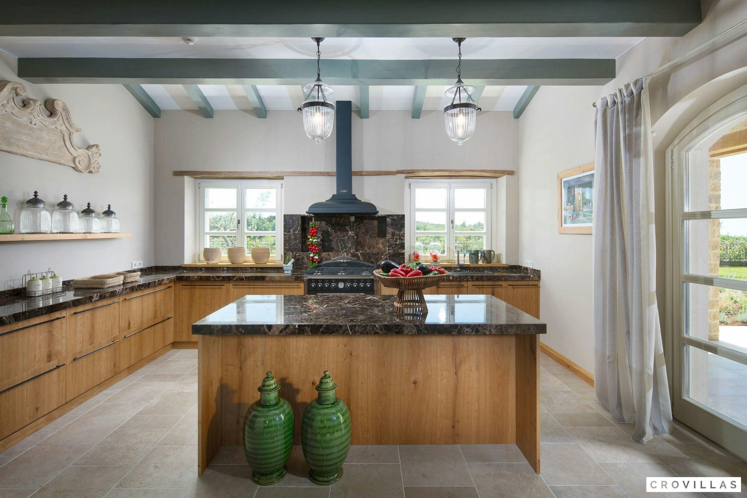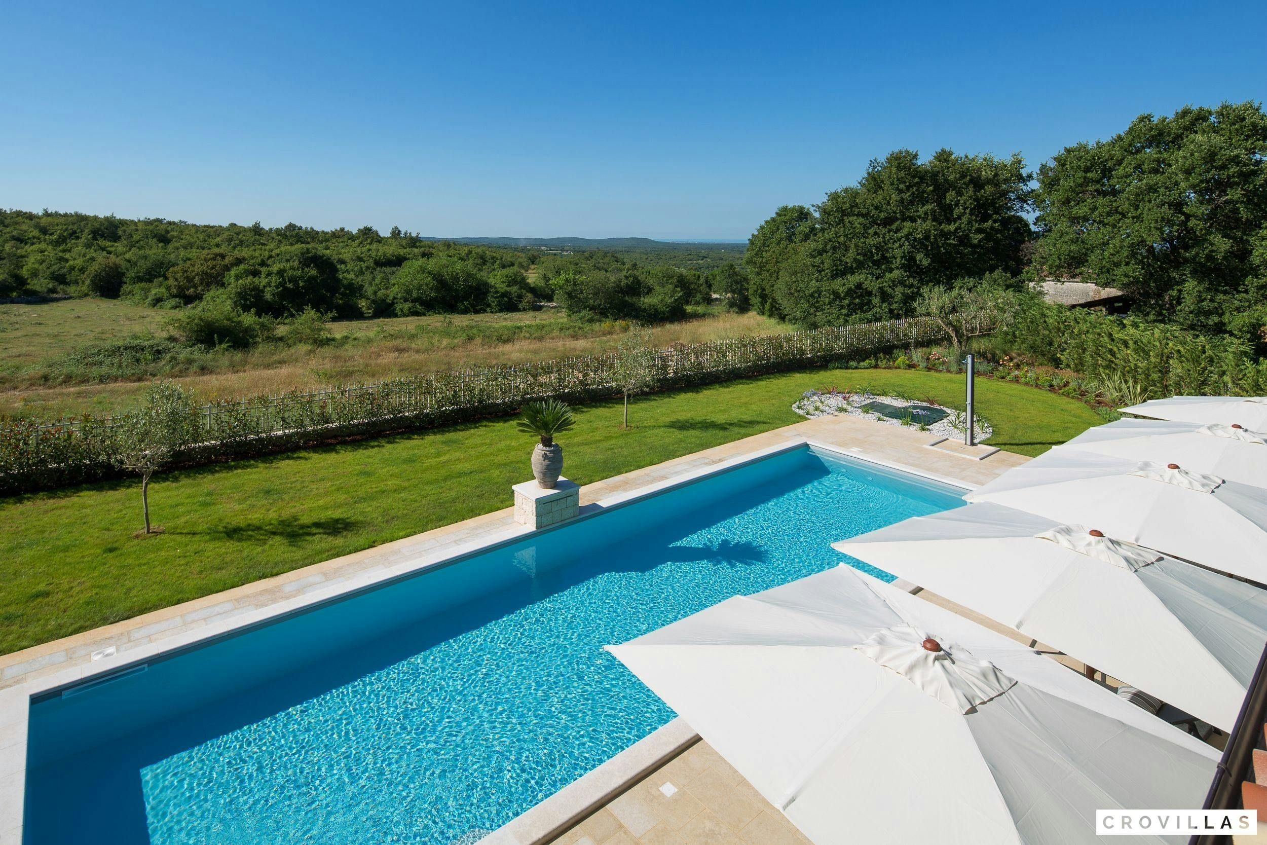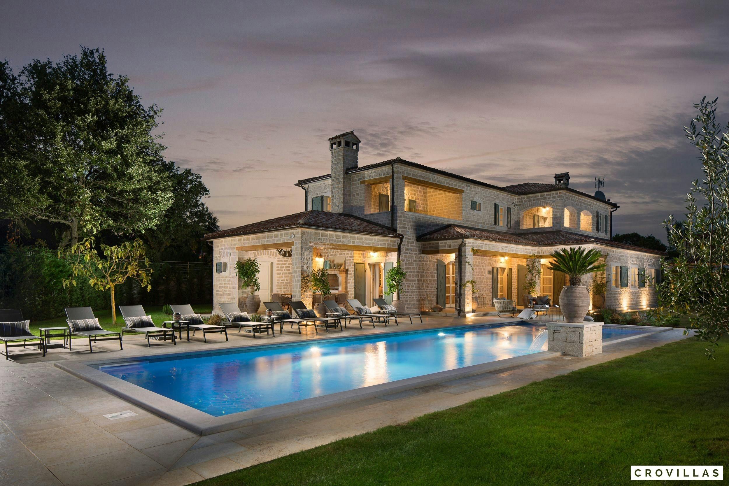 This home is an elegant and stylish villa located in Croatia. Only 15 km from the sea, guests can enjoy the outdoor area with various possibilities to spend quality time under the open sky. The pool is available for sporty laps and fun splashing around, while comfortable loungers and a beautifully landscaped garden surround the exterior. The villa also features a brick barbecue, two balconies with a distant sea view, and a multifunctional sports court shared with three neighbouring villas. Indoors, guests can relax in the spacious living room by the fireplace or at the long table in the dining room. The open-plan kitchen offers high-tech comfort for joint cooking sessions. Plenty of en-suite bedrooms round out the living space. The home is perfect for active vacationers who demand versatility and luxury in their holiday rental experience.
