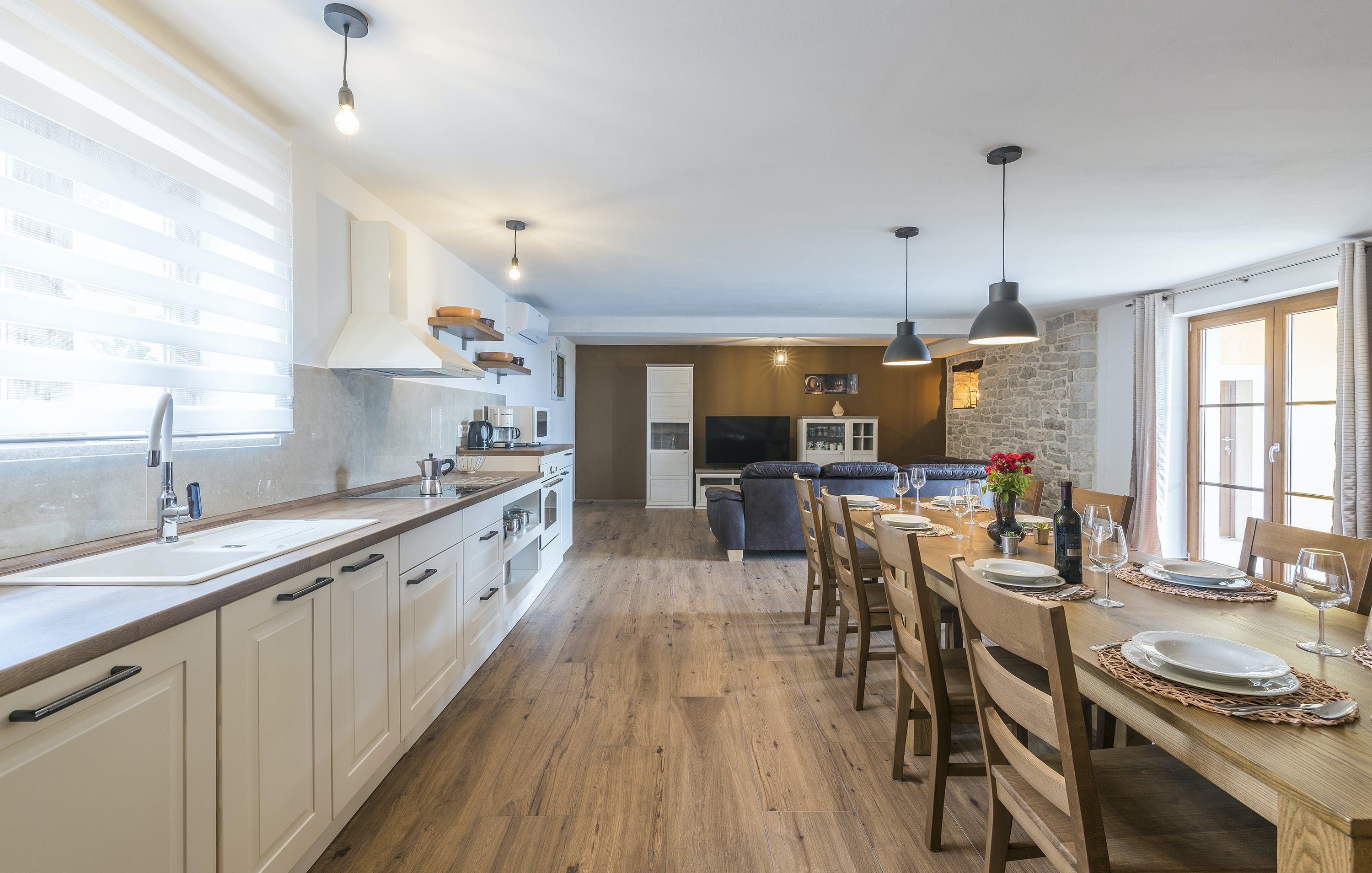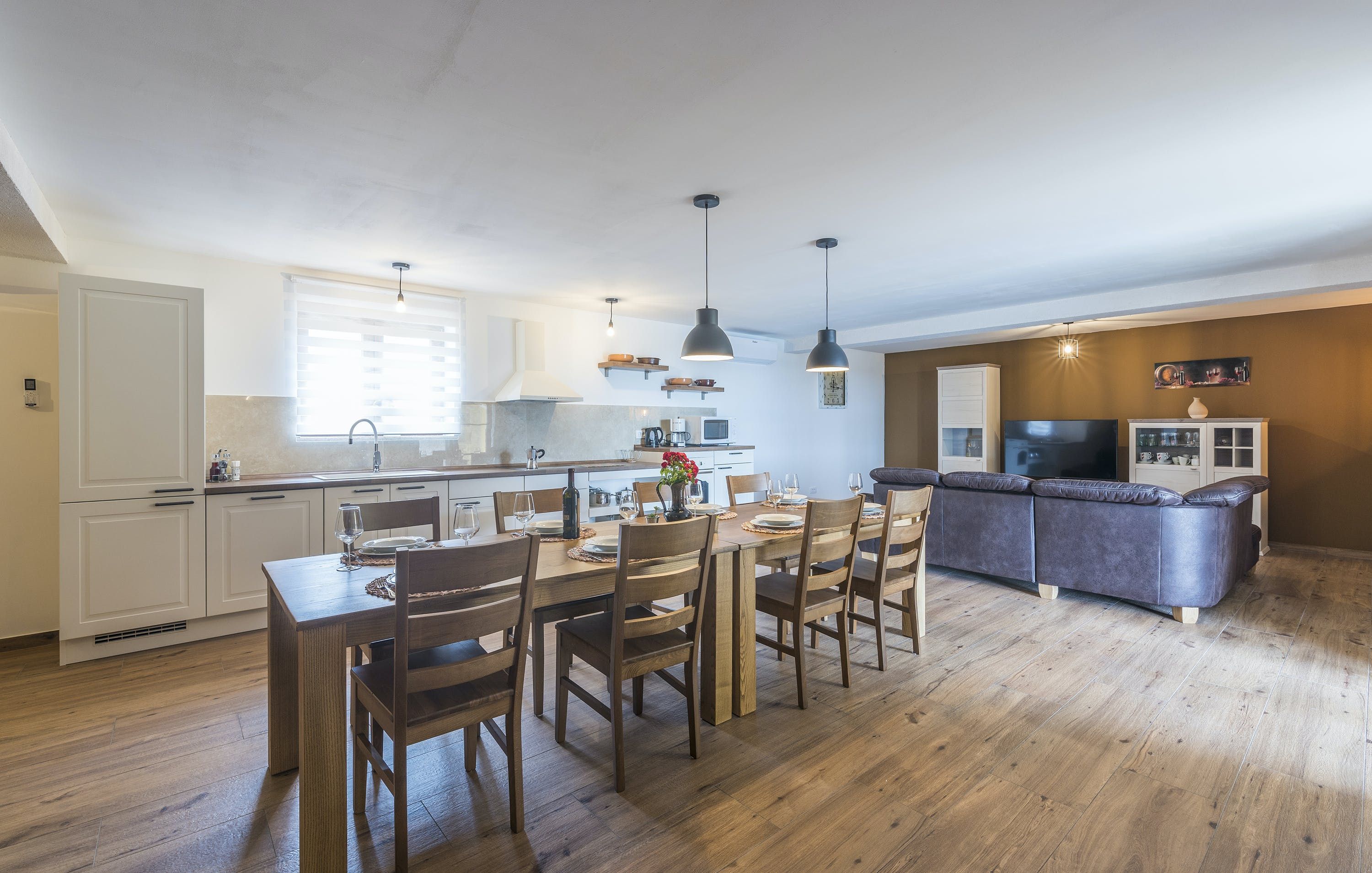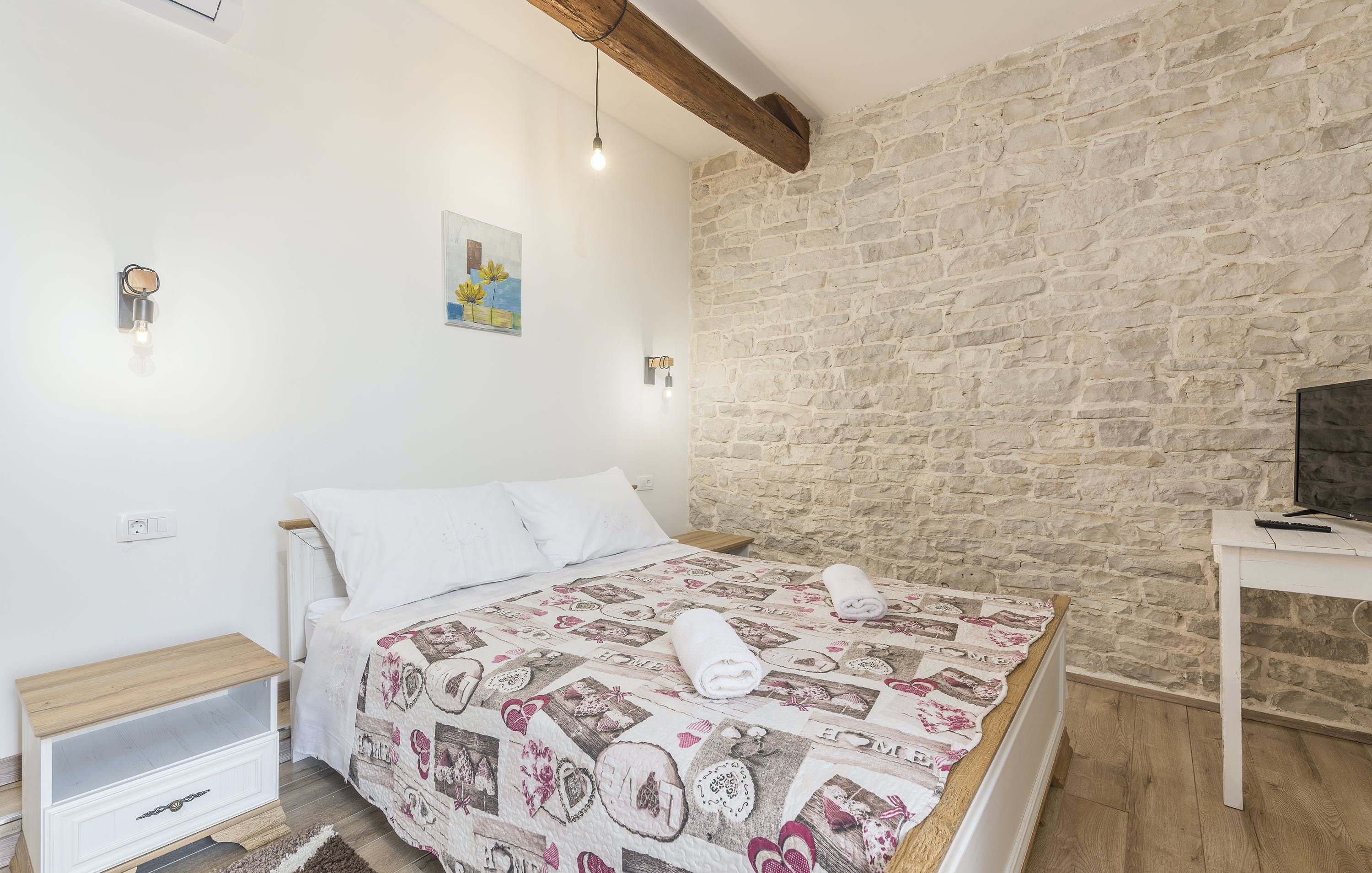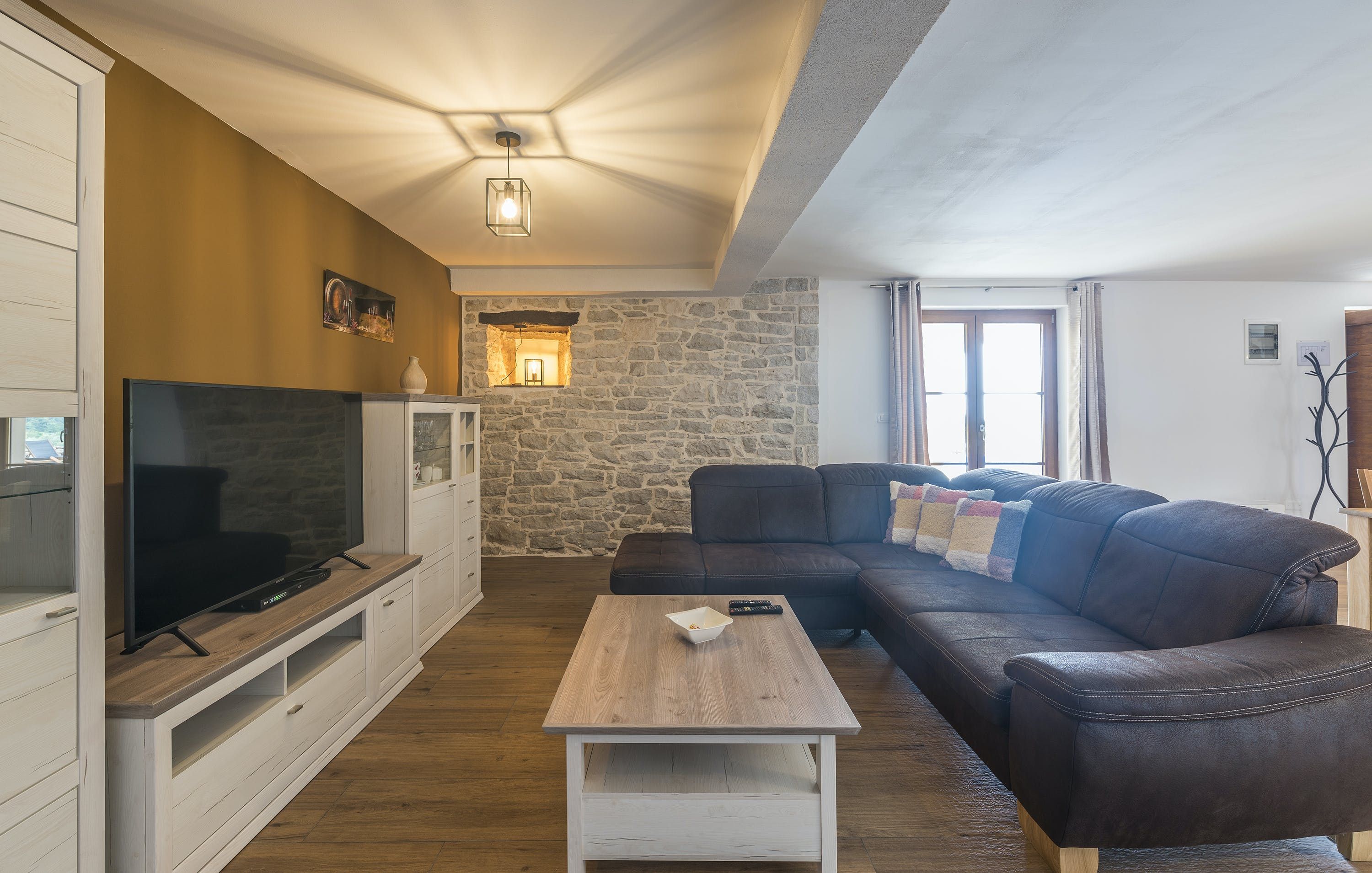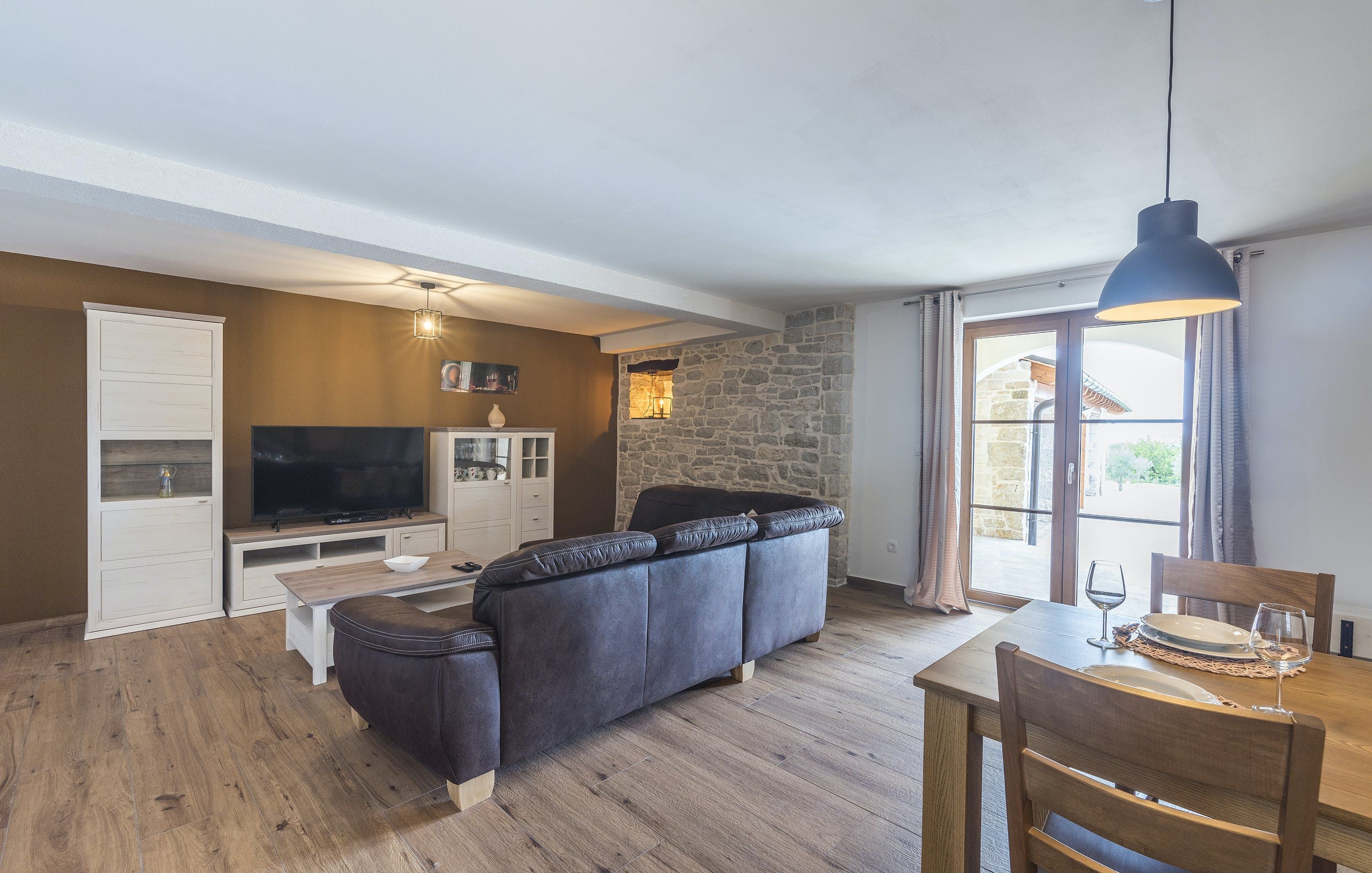 This Istrian villa is a spacious vacation home that boasts 4,282 m² of space for guests to enjoy. The villa offers a saltwater pool with modern loungers, a playground for children, and bicycles for exploring the area. Guests can also enjoy the sheltered outdoor dining area with a large table and summer kitchen including a brick charcoal grill. Inside, the open living and dining room with an integrated kitchen provides plenty of space for relaxation and entertainment. The cosy furnishings and natural stone elements add charm to the decor. The villa has four air-conditioned bedrooms with en suite shower rooms, providing perfect temperatures for sleeping even in high summer. An extra bed is available upon request. This Istrian villa is perfect for those looking for a generously sized vacation home in Croatia that offers both indoor and outdoor comfort.