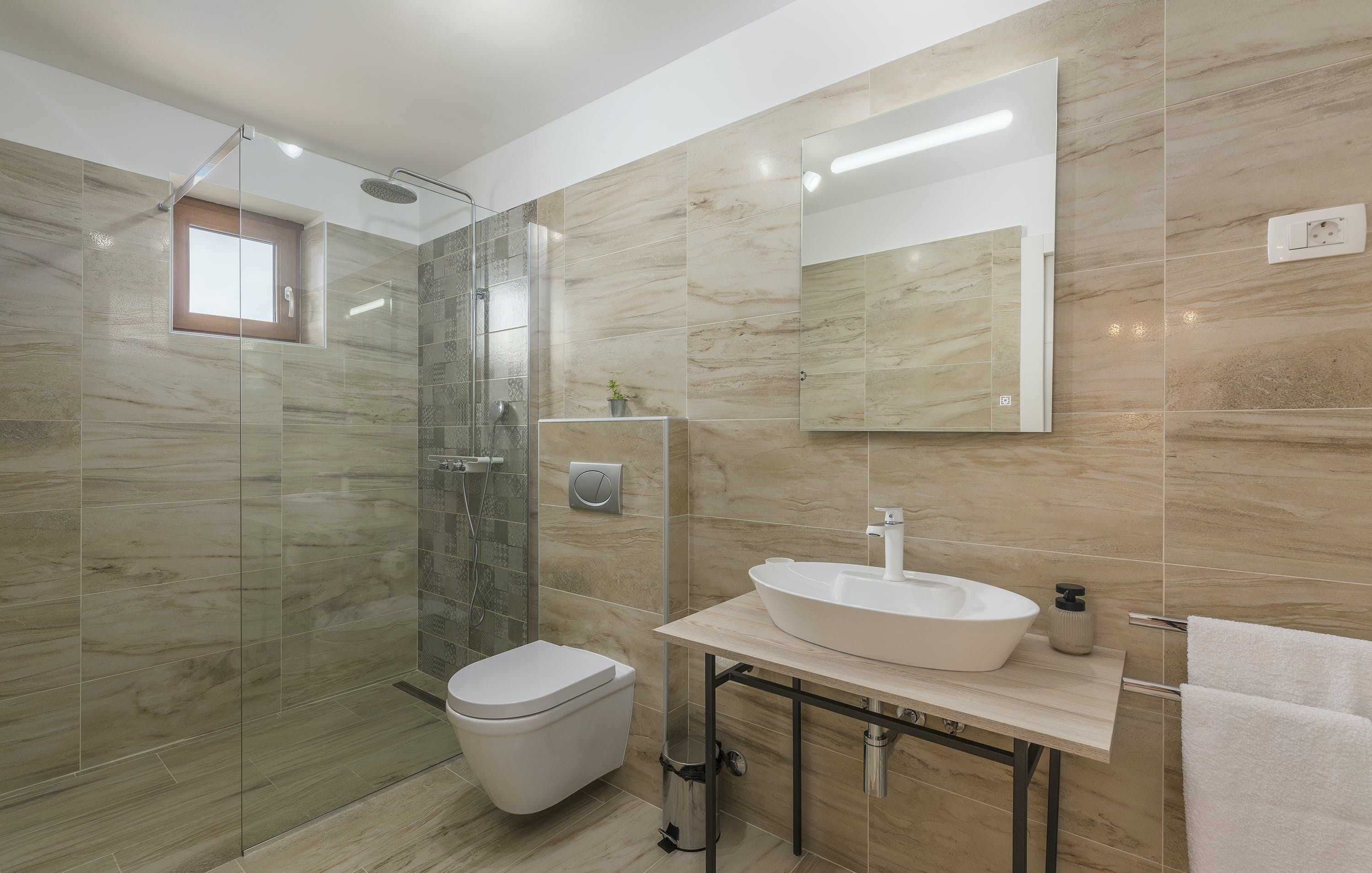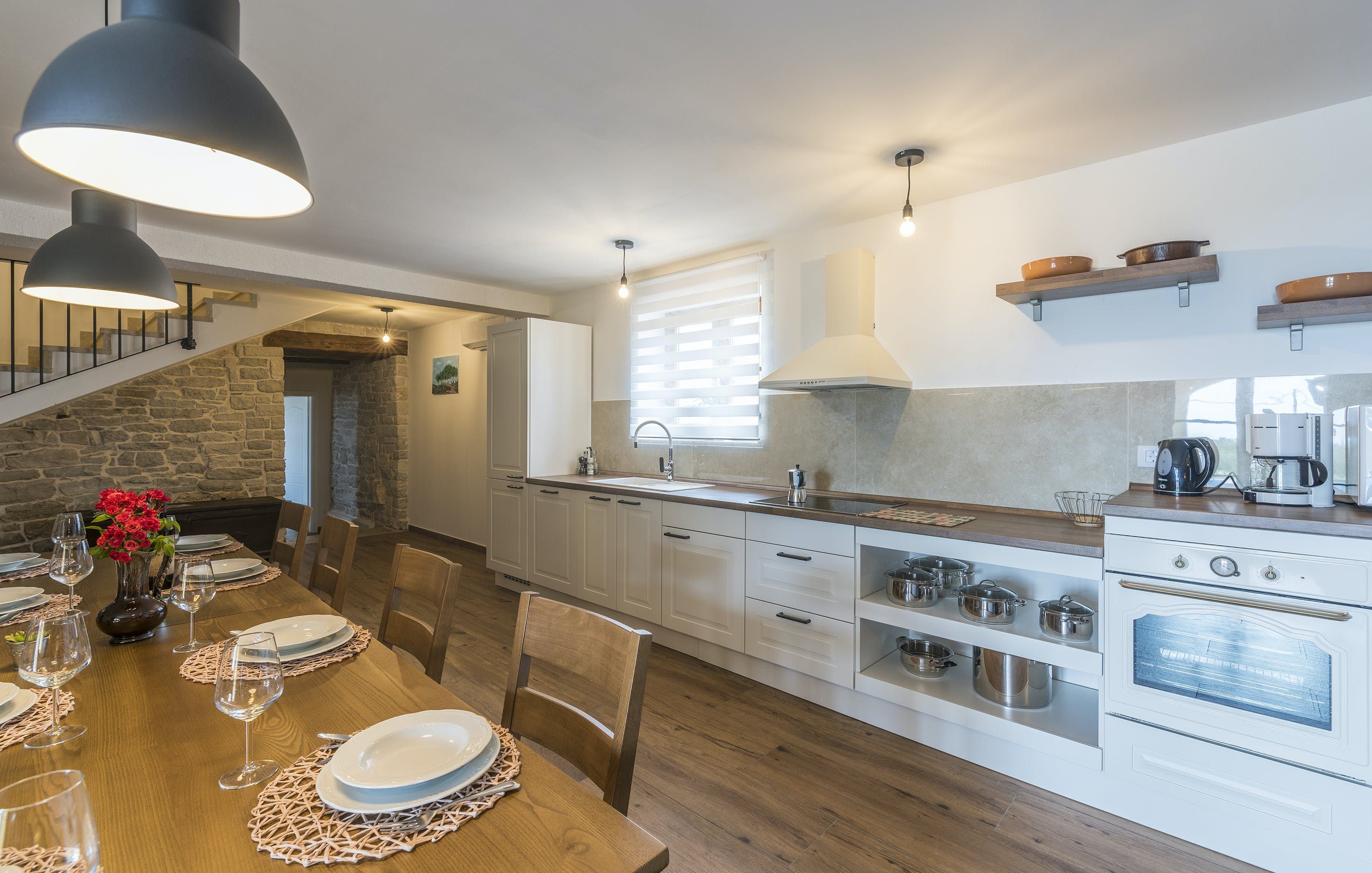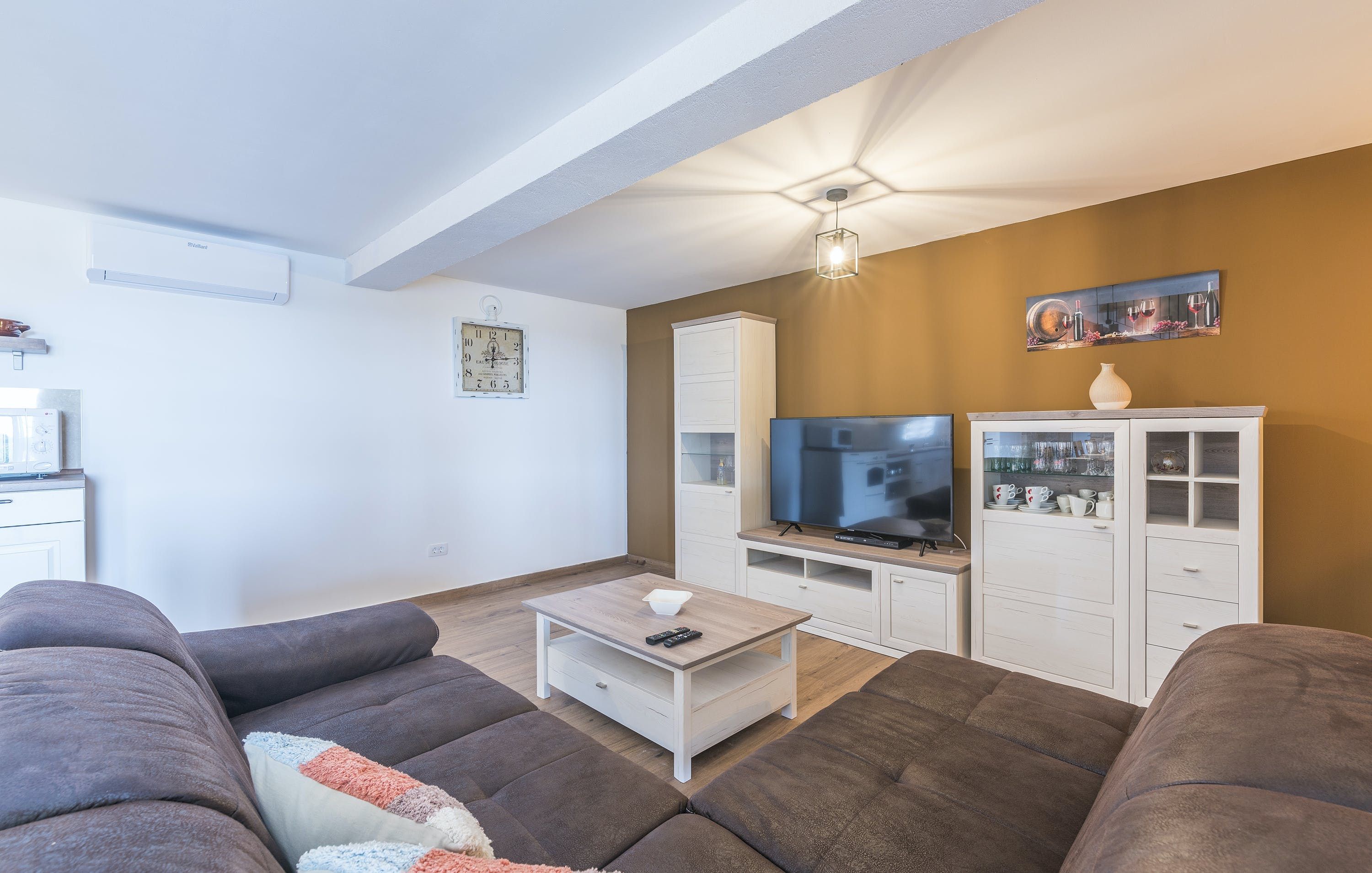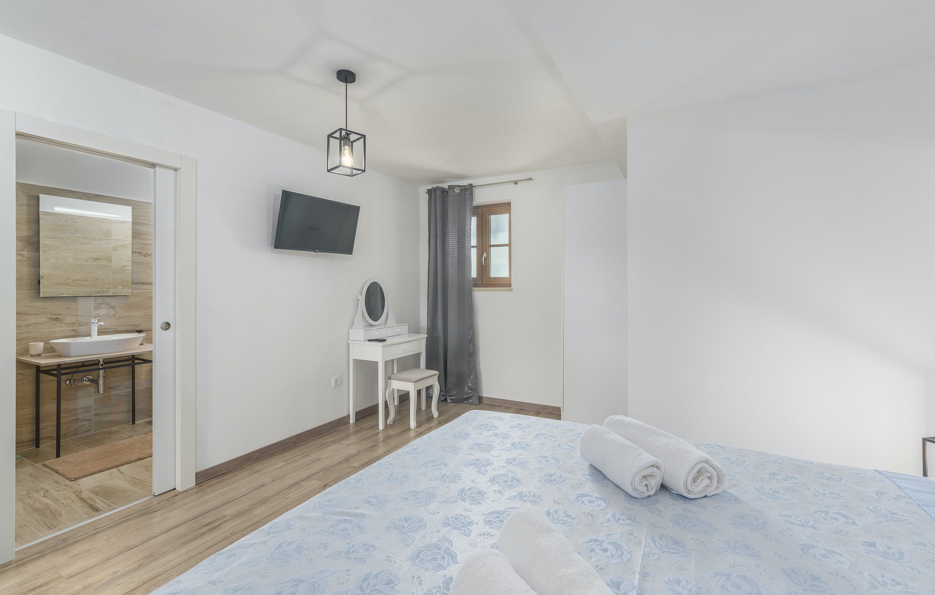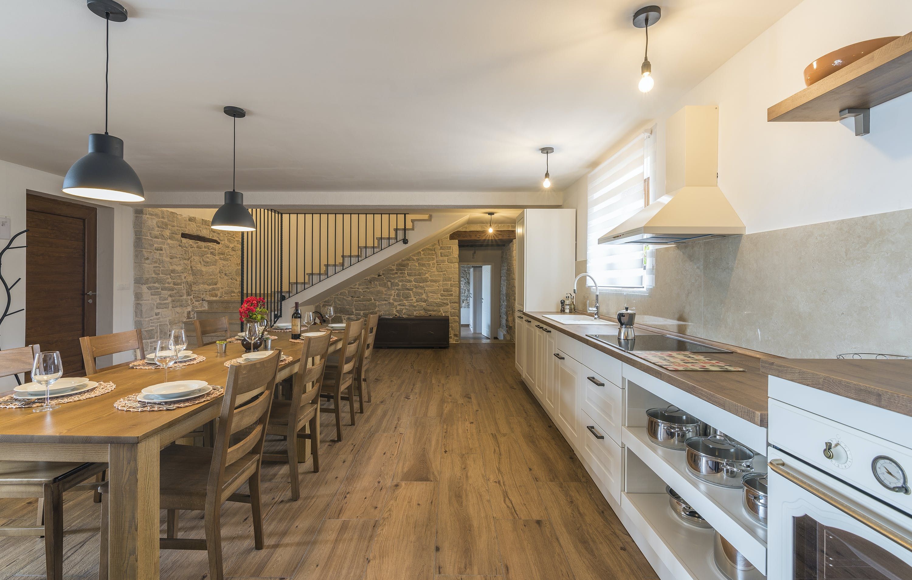This Istrian villa is a spacious vacation home that boasts 4,282 m² of space for guests to enjoy. The villa offers a saltwater pool with modern loungers, a playground for children, and bicycles for exploring the area. Guests can also enjoy the sheltered outdoor dining area with a large table and summer kitchen including a brick charcoal grill. Inside, the open living and dining room with an integrated kitchen provides plenty of space for relaxation and entertainment. The cosy furnishings and natural stone elements add charm to the decor. The villa has four air-conditioned bedrooms with en suite shower rooms, providing perfect temperatures for sleeping even in high summer. An extra bed is available upon request. This Istrian villa is perfect for those looking for a generously sized vacation home in Croatia that offers both indoor and outdoor comfort.