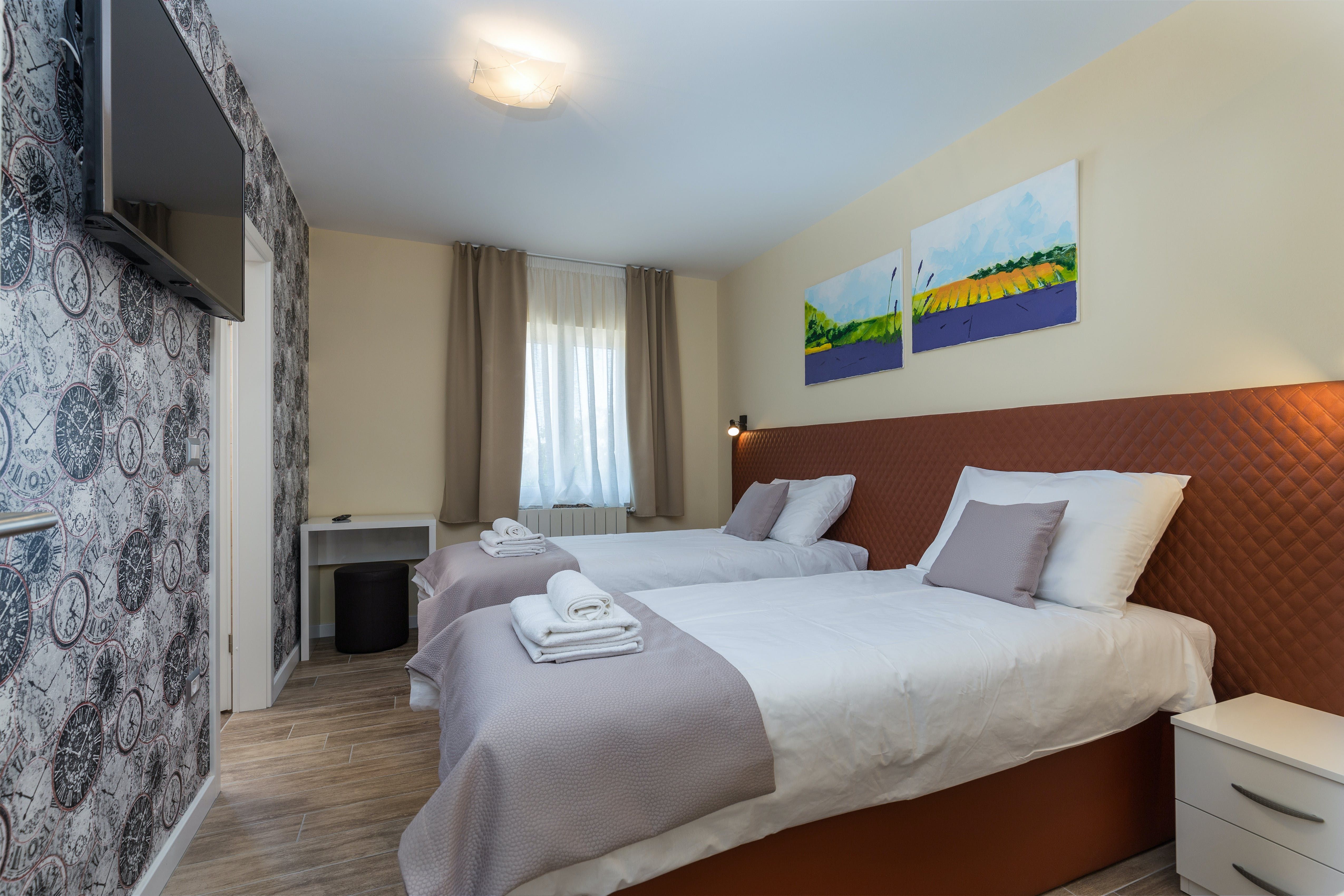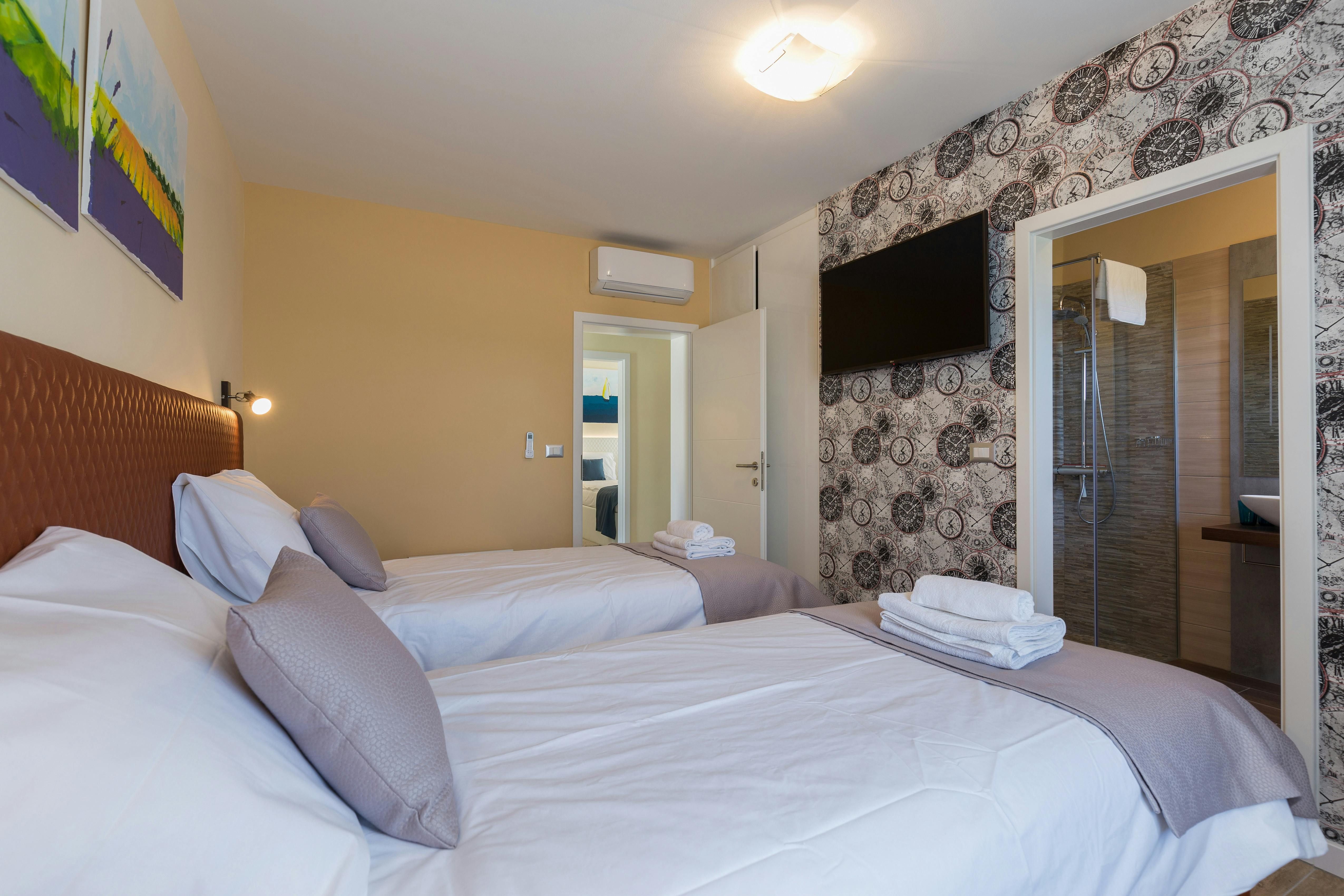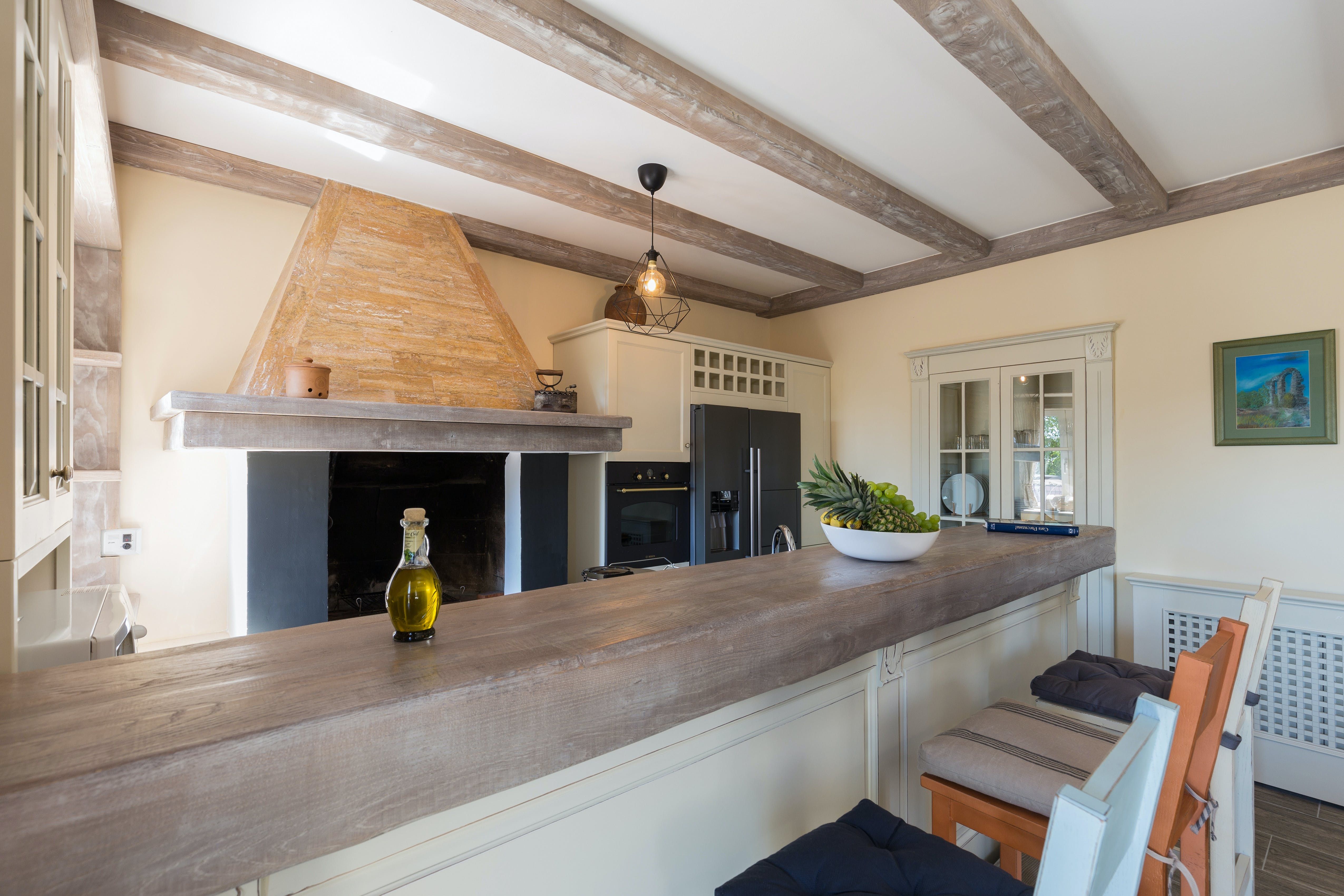 This is a beautiful vacation home that offers a fantastic view and is perfect for families or groups of up to eight adults and two children. The property has multiple covered and sunny terraces, a large balcony, and a heated pool with attractive corner steps, blue mosaic tiles, and hydromassage. The table tennis table provides an exciting match for those who are in the mood for action. Guests can enjoy their meals together at the large dining table or heat up the grill in the evening. The modern country house style of the villa is tasteful and cosy, featuring earth tones, white and cream nuances, and sparingly dosed colorful spots. The open-plan living concept on the first floor includes functional areas for dining, living, and cooking. A unique feature of this villa is its living room with a pool table. With four double bedrooms including bathrooms en suite, all fellow travelers can reside most comfortably and with ample privacy. It is perfect for those seeking relaxation with a design touch, not far from the village.