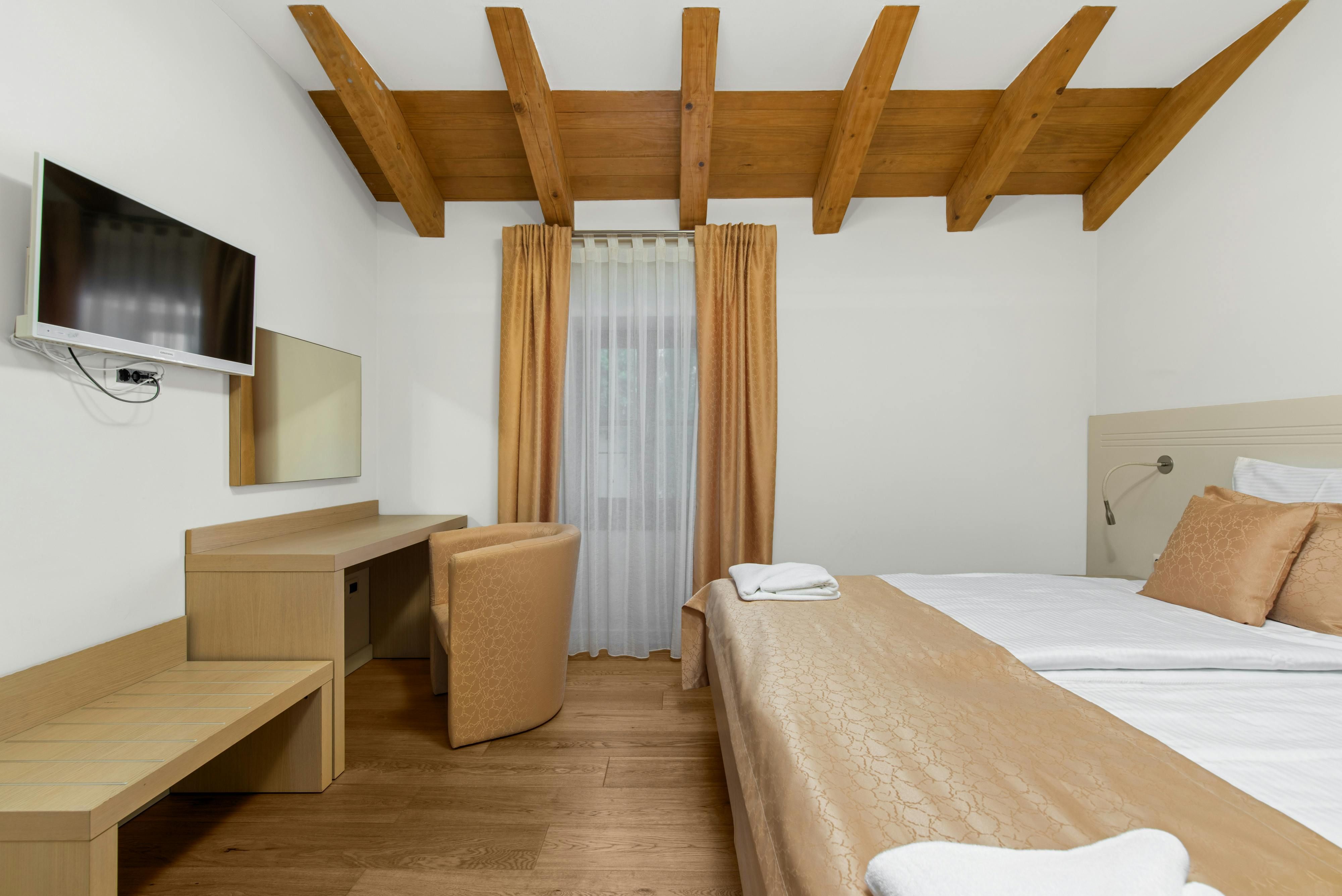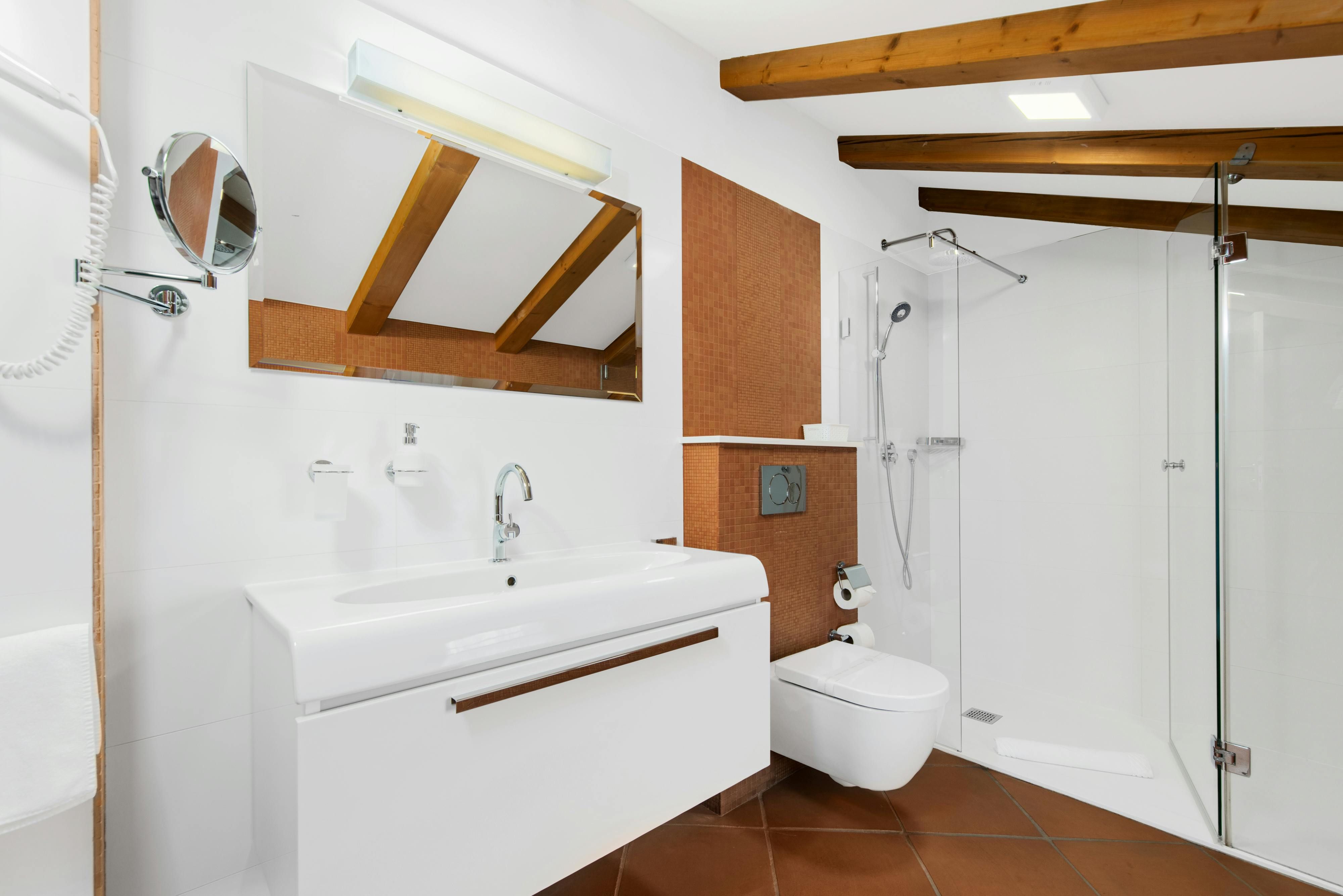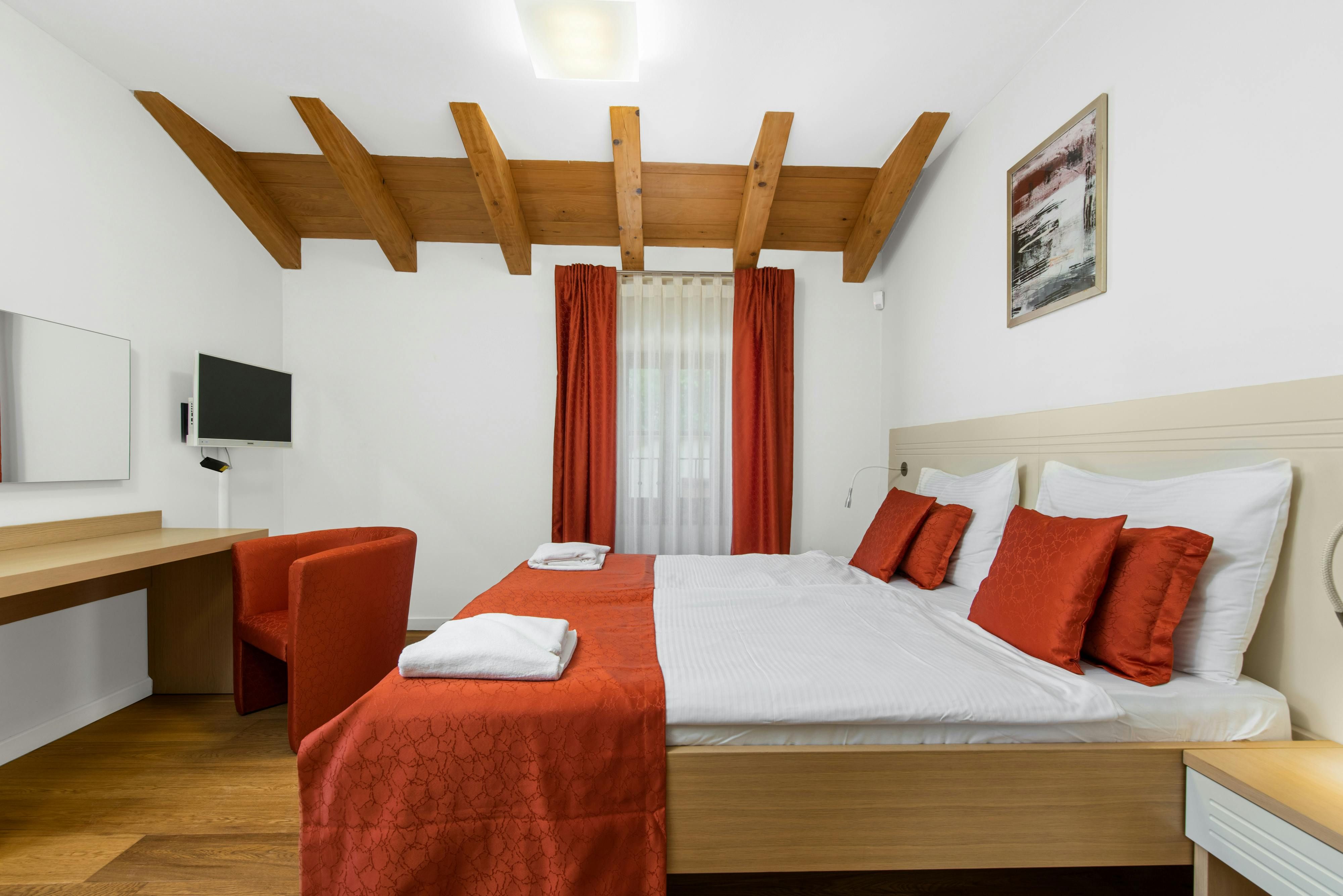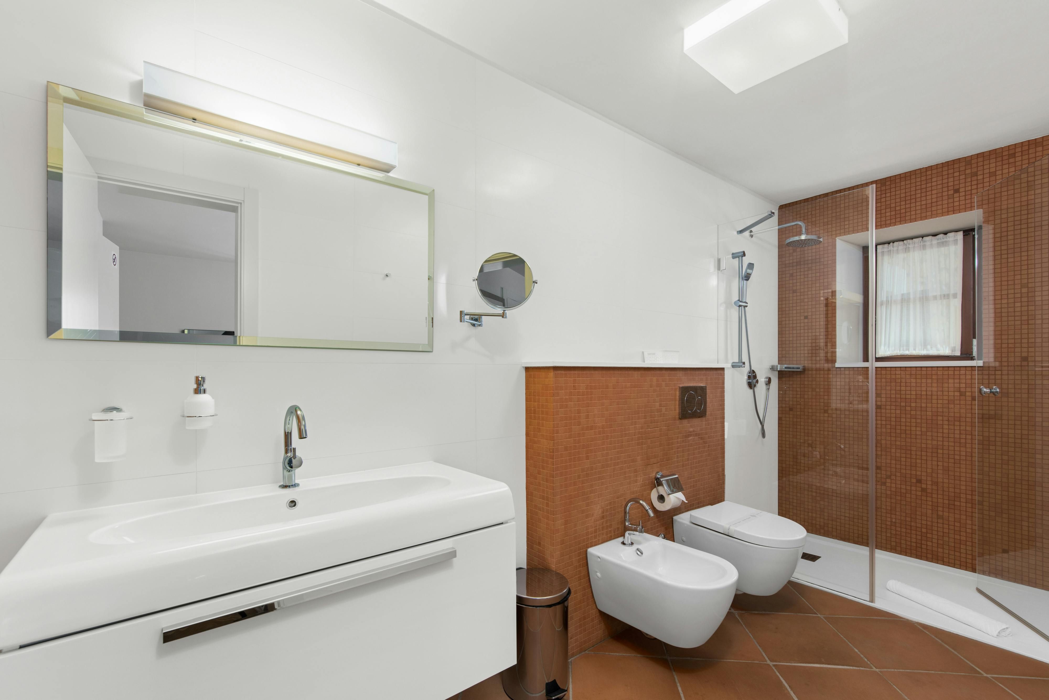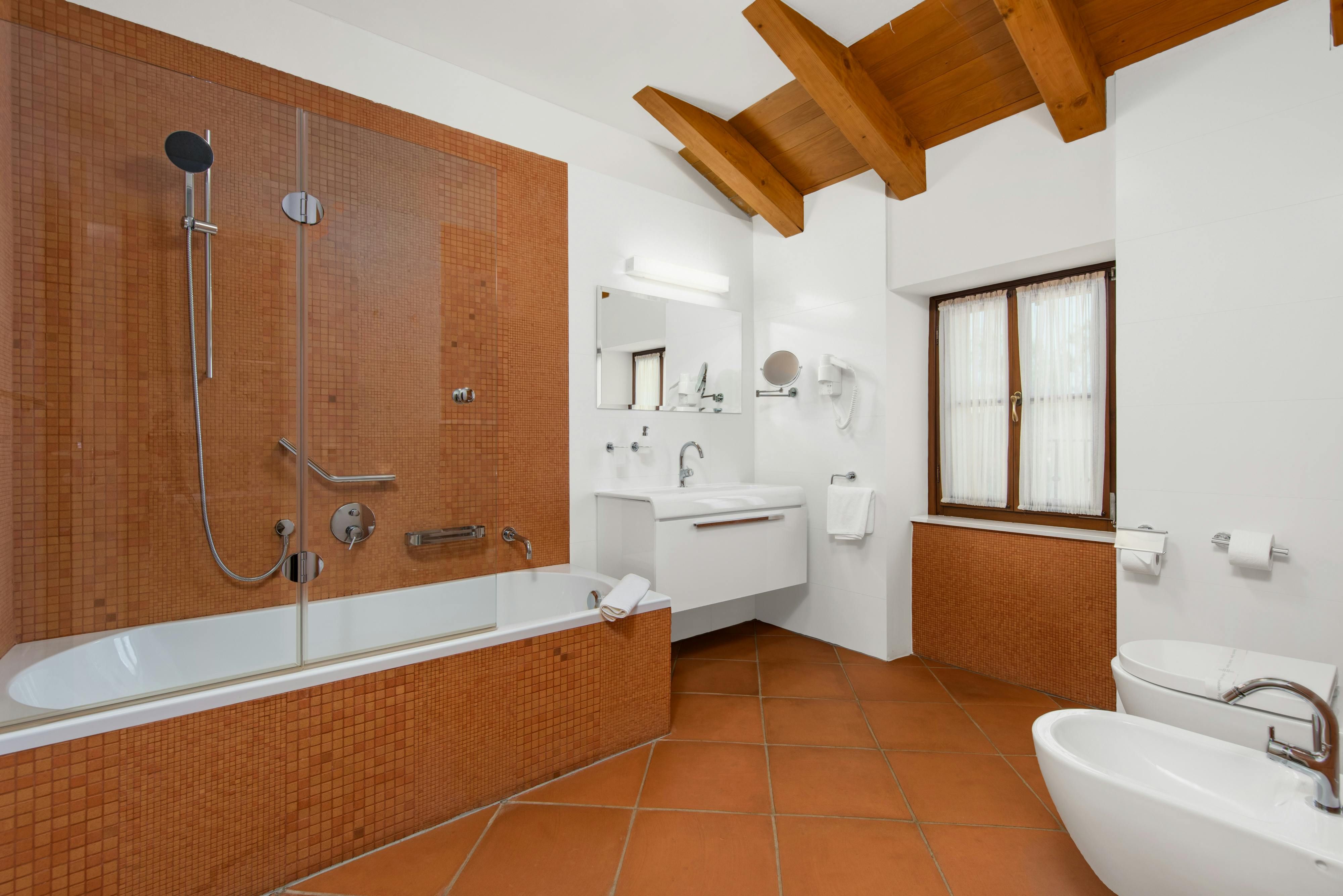 This luxurious villa, surrounded by a fenced plot of 800 m², offers maximum privacy with its two residential buildings and an indoor area of 300 m². The park-like outdoor area boasts a large pool, jacuzzi, tennis court, children's playground, trampoline, and brick charcoal grill. The cosy country house ambience features air-conditioned rooms with wood, natural stone elements, and color accents. The main house is spread over three floors and includes a spacious living/dining room with fireplace, SAT-TV, fully equipped kitchen, four double bedrooms each with an en suite bathroom, and a guest toilet. The smaller stone house near the pool has a small kitchen, dining area, living area, one bedroom with an en suite bathroom upstairs and access to a covered balcony. A game room with ping pong table, darts and a pool table completes the equipment of the villa. This property comfortably accommodates up to 14 people.