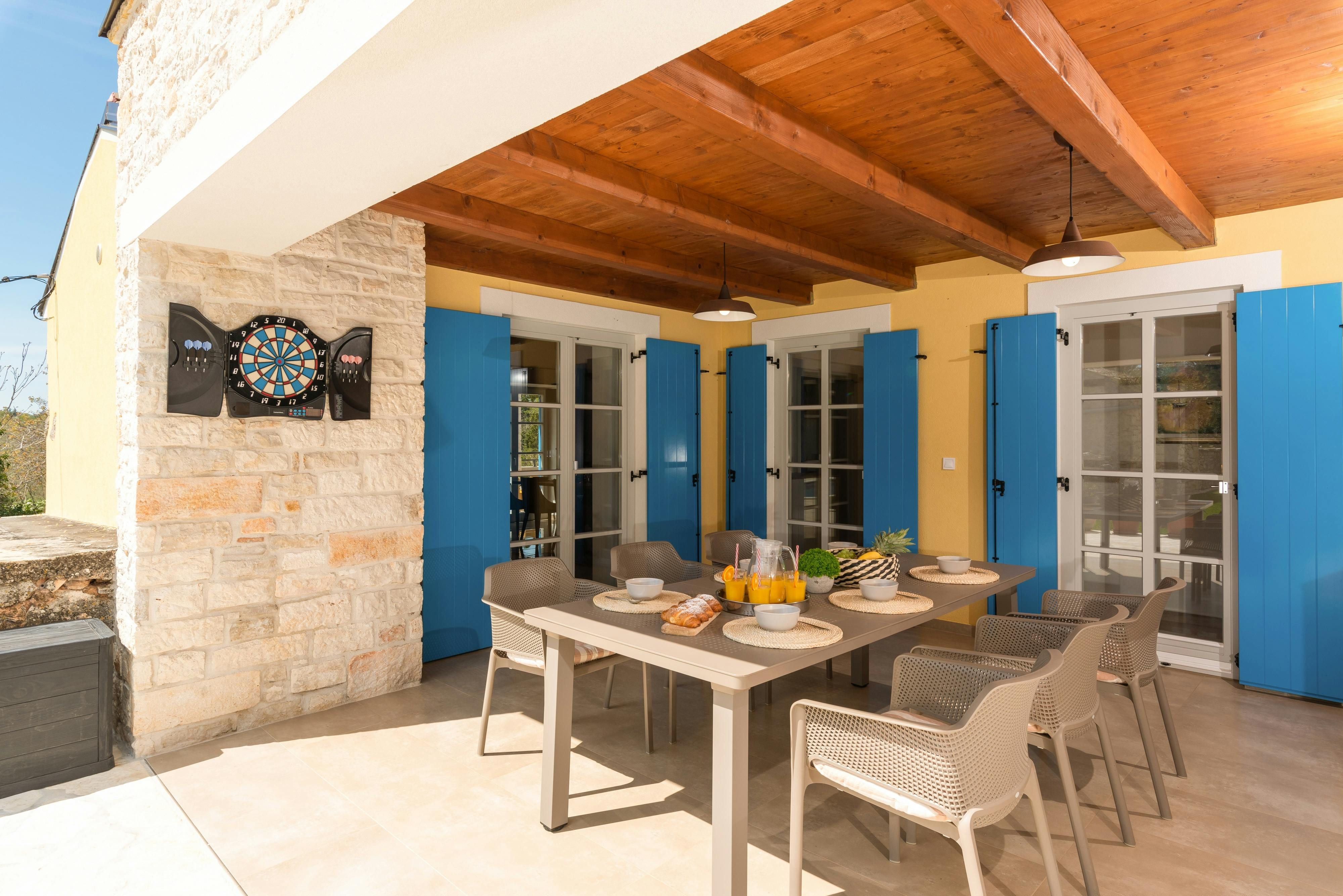Situated just 10 kilometres from Pula, this home makes the most of its Istrian setting. You're perfectly placed for exploring Pula’s historic landmarks, while Duga Uvala beach is only a short drive away when the sea calls. Prefer to take things slow? Spend your days unwinding by the private pool, sunny terrace, or outdoor games area. Inside, the style is contemporary yet cosy – and the fireplace will be a welcome addition on chilly evenings. With a large living area and a modern kitchen, we think it has everything you need for a relaxed Croatian getaway.