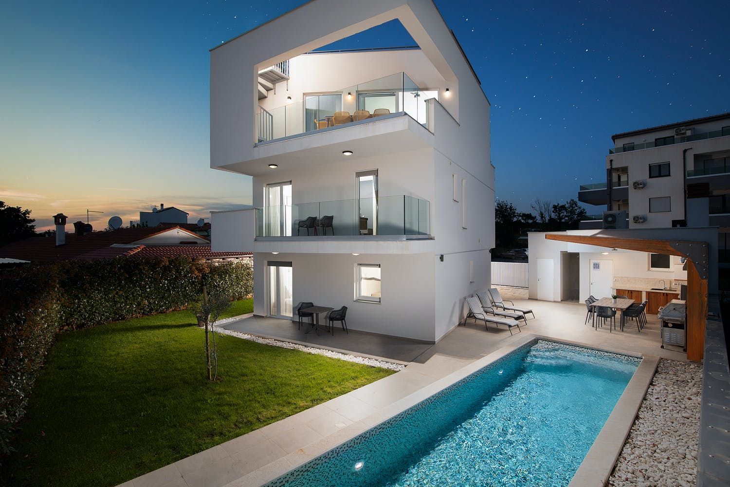 This luxurious Croatian villa is a stunning holiday rental that offers breathtaking views and modern amenities. Situated in a picturesque location, the home has been designed to the highest standards with top-notch furnishings to ensure guests have a comfortable and relaxing stay. The villa's prime location offers easy access to all the local attractions and activities, making it the ideal base for exploring Croatia's beauty. With its spacious and luxurious design, this property is perfect for those looking for an indulgent getaway.