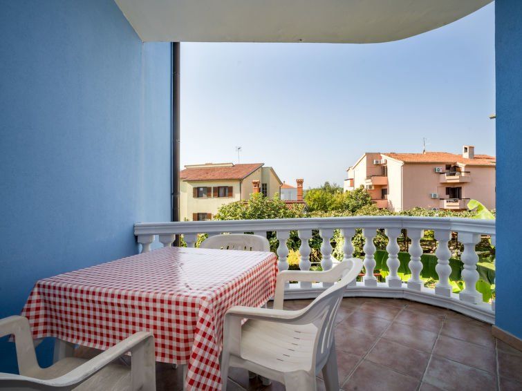 2-room apartment 35 m2 on 1st floor. Object suitable for 2 adults + 1 child. Living/dining room with 1 sofabed, satellite TV and air conditioning. Exit to the terrace. 1 room with 1 double bed (2 x 80 cm, length 190 cm). Open kitchen (4 hot plates, electric coffee machine). Bath/WC.