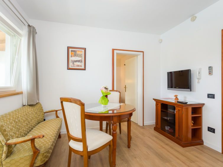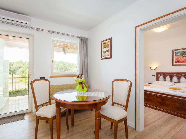 "Red", 2-room apartment 30 m2 on 1st floor. Beautiful and cosy furnishings: living/dining room with satellite TV (flat screen), air conditioning. Exit to the balcony. 1 room with 1 french bed (160 cm, length 200 cm). Open kitchen (2 ceramic glass hob hotplates, toaster, kettle, microwave, freezer, electric coffee machine).