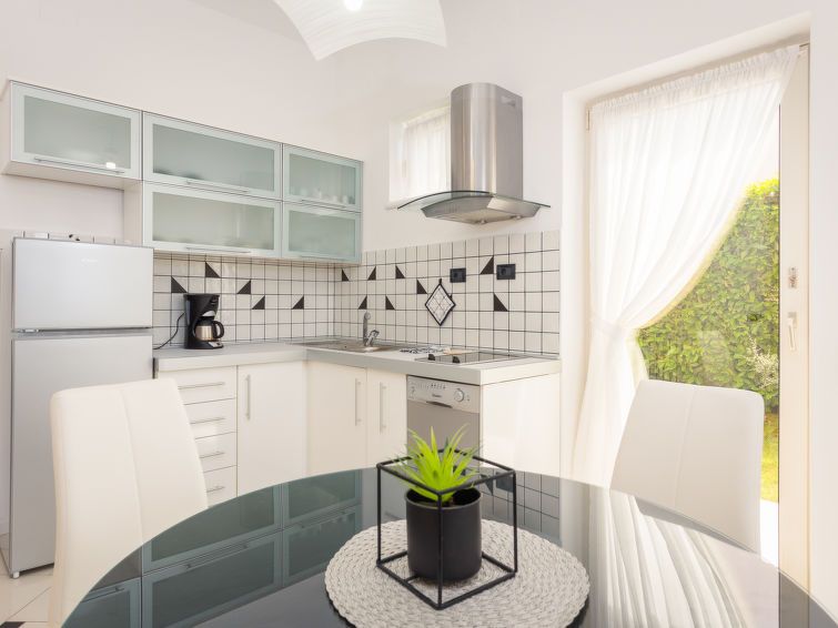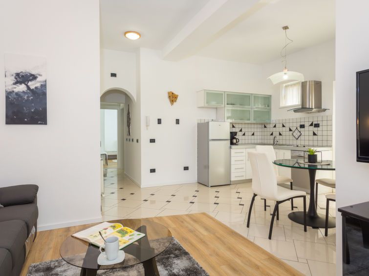 "Black&White", 3-room apartment 70 m2. Beautiful and cosy furnishings: living/dining room with satellite TV (flat screen), air conditioning. 1 room with 1 bed (80 cm, length 200 cm). 1 room with 1 french bed (160 cm, length 200 cm). Open kitchen (dishwasher, 2 ceramic glass hob hotplates, toaster, kettle, microwave, freezer, electric coffee machine).