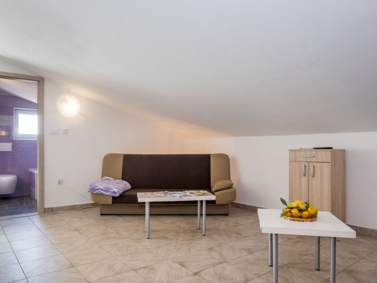 2-room apartment 65 m2 on 2nd floor. Living/dining room with sloping ceilings, ceiling height 160 - 350 cm with 2 sofabeds (150 cm, length 200 cm), satellite TV (flat screen), air conditioning. 1 room with sloping ceilings, ceiling height 160 - 350 cm with 1 double bed (2 x 80 cm, length 200 cm).