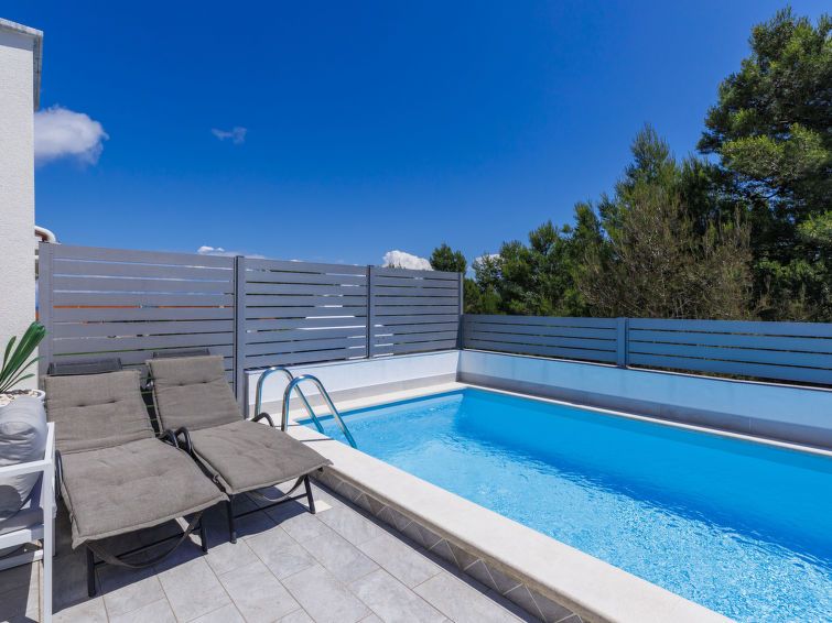 3-room semi-detached house 100 m2 on 2 levels. Beautiful and cosy furnishings: living/dining room with 1 double sofabed and satellite TV (flat screen), air conditioning. Exit to the terrace, to the swimming pool. Open kitchen (dishwasher, 4 ceramic glass hob hotplates, microwave, freezer, electric coffee machine).