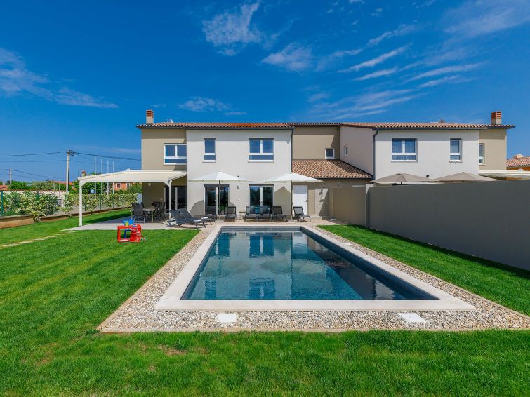 5-room semi-detached house 170 m2 on 2 levels. Beautiful and modern furnishings: living/dining room with satellite TV and air conditioning. Exit to the terrace, to the swimming pool. Open kitchen (oven, dishwasher, 4 induction hot plates, toaster, kettle, microwave, freezer, electric coffee machine).