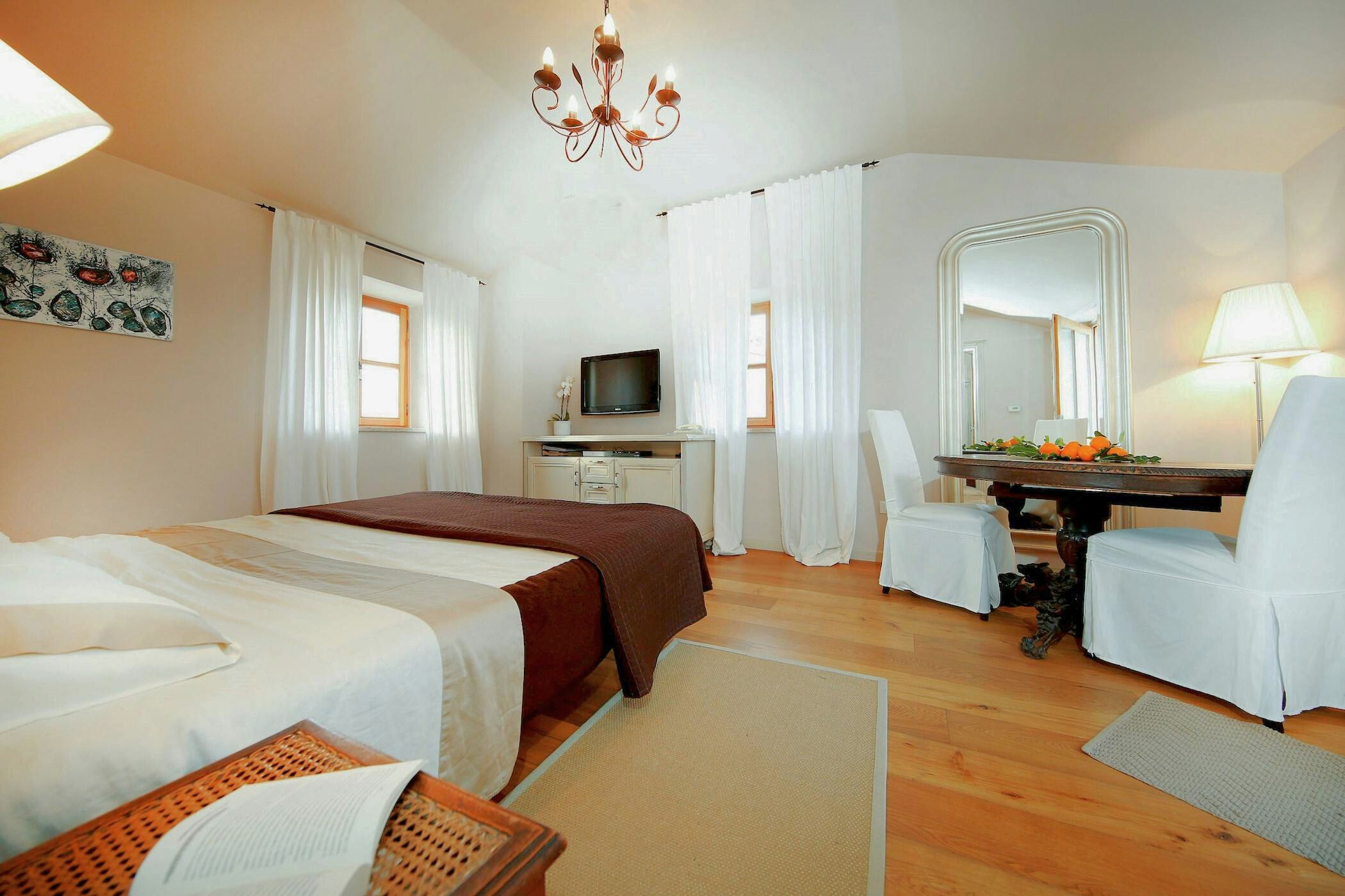 This home is a charming and elegant holiday rental located in the heart of Istria, surrounded by beautiful vineyards and greenery. The villa boasts a heated pool, perfect for lounging under the Mediterranean sun on comfortable loungers or enjoying an evening barbecue using the brick barbecue provided. Four bicycles are also available for guests to explore the surrounding areas. The interior design of the villa is a mix of traditional and modern styles with natural stone and solid wood, giving it a warm and inviting character. The spacious living-dining room features an open corner fireplace, providing a cozy atmosphere on cool evenings. The fully equipped kitchen and winter garden offer additional comfort and relaxation. With three double bedrooms, each with en suite bathrooms, this home offers maximum privacy for guests. The location is attractive, with easy access to the town of Motovun known for its truffles, fine restaurants, and shopping options, as well as the "smallest city in the world," Hum.