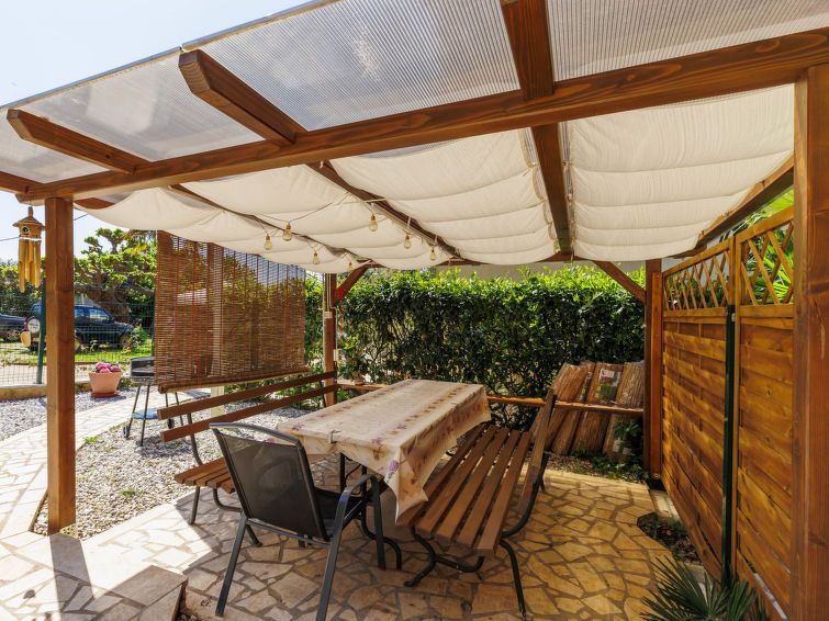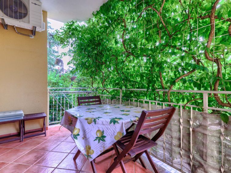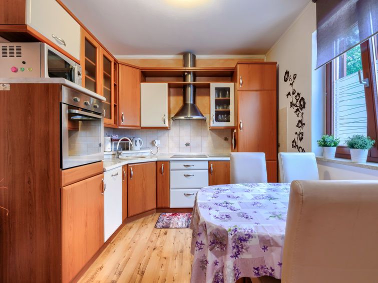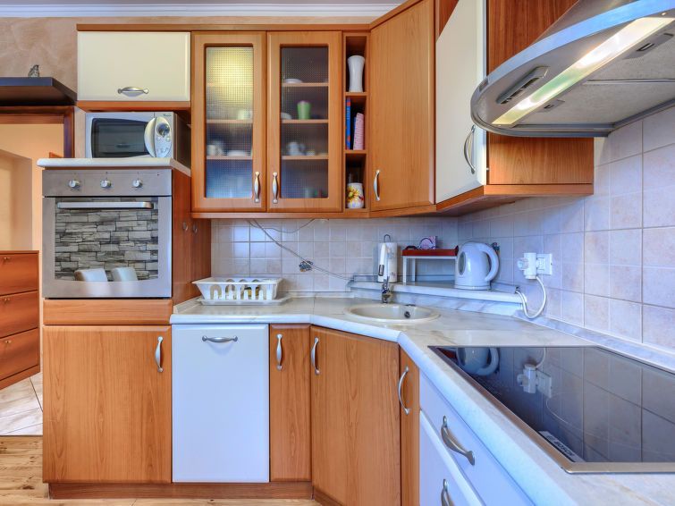 2-room apartment 45 m2, on the ground floor. Living/dining room with 1 double sofabed (140 cm, length 190 cm), satellite TV (flat screen). 1 room with 1 french bed (180 cm, length 200 cm). Open kitchen (oven, dishwasher, 4 induction hot plates, kettle, microwave, freezer, electric coffee machine) with air conditioning.