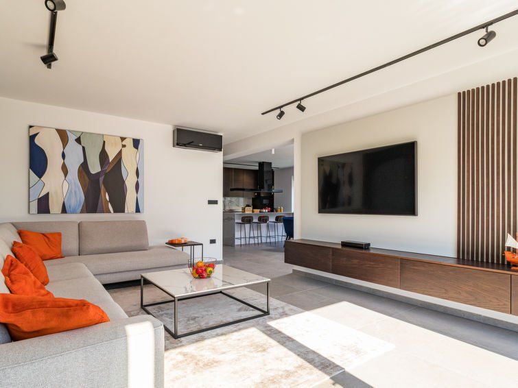 4-room villa 160 m2 on 2 levels, south-west facing position. Beautiful and tasteful furnishings: living/dining room 80 m2 with cable TV and international TV channels (flat screen), air conditioning. Exit to the terrace, to the swimming pool. Open kitchen (oven, dishwasher, 4 induction hot plates, toaster, kettle, microwave, freezer, electric coffee machine, cooking island).