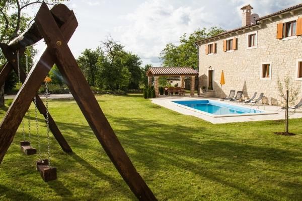 House is in a small, typical Istrian village and has a lot of piece and quiet. The garden is beautiful, a lot of green grass and space for kids to play with nice swimming pool.