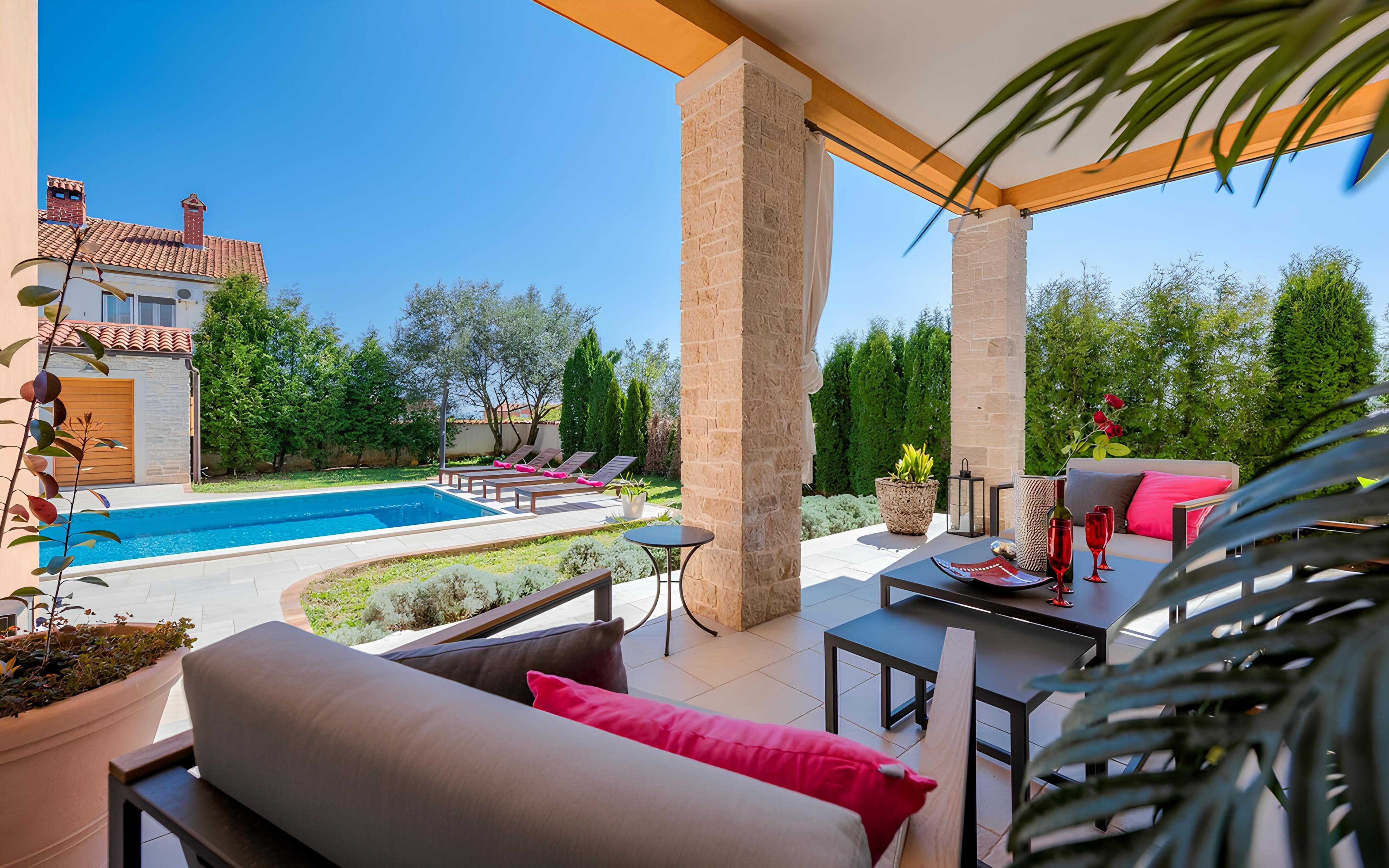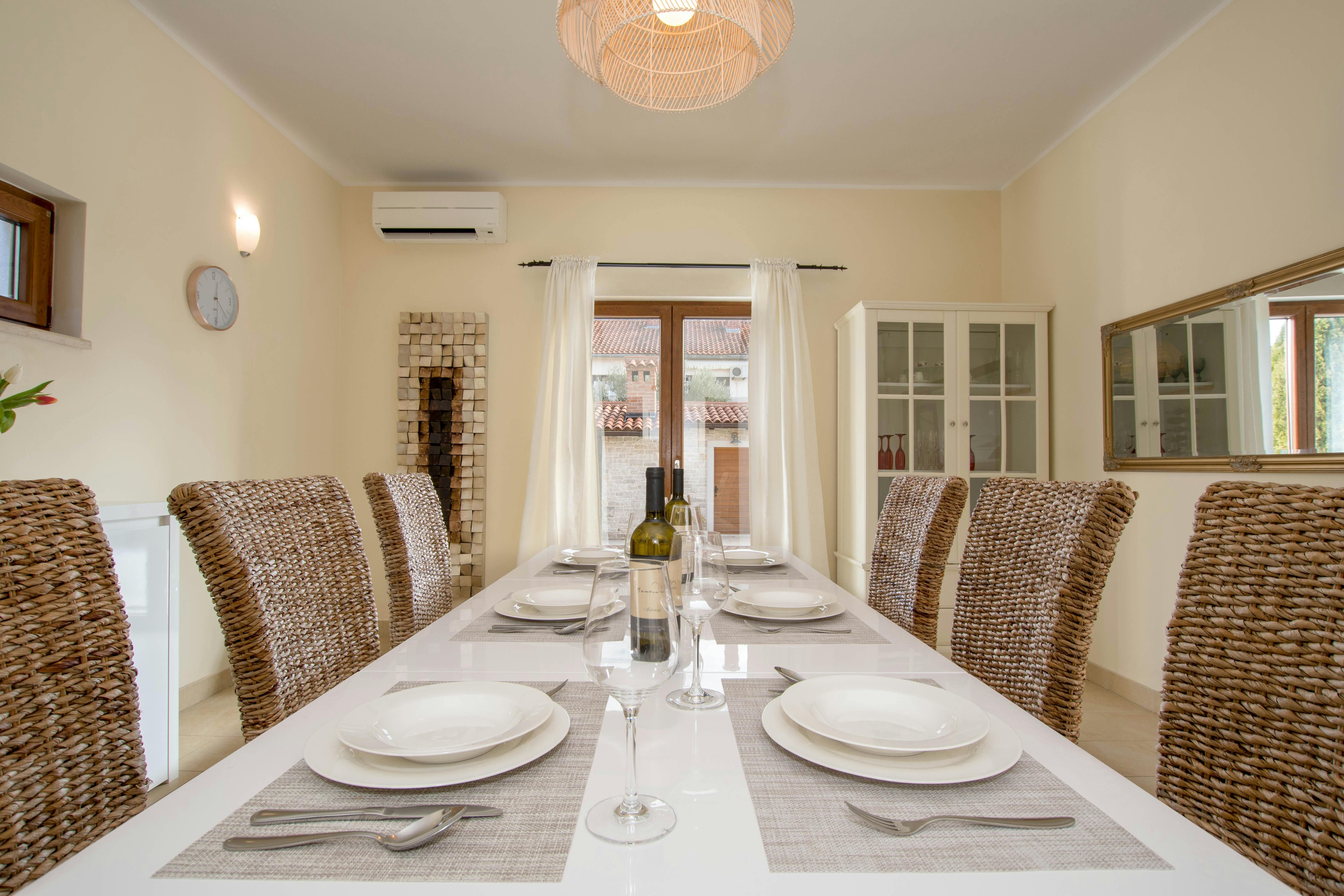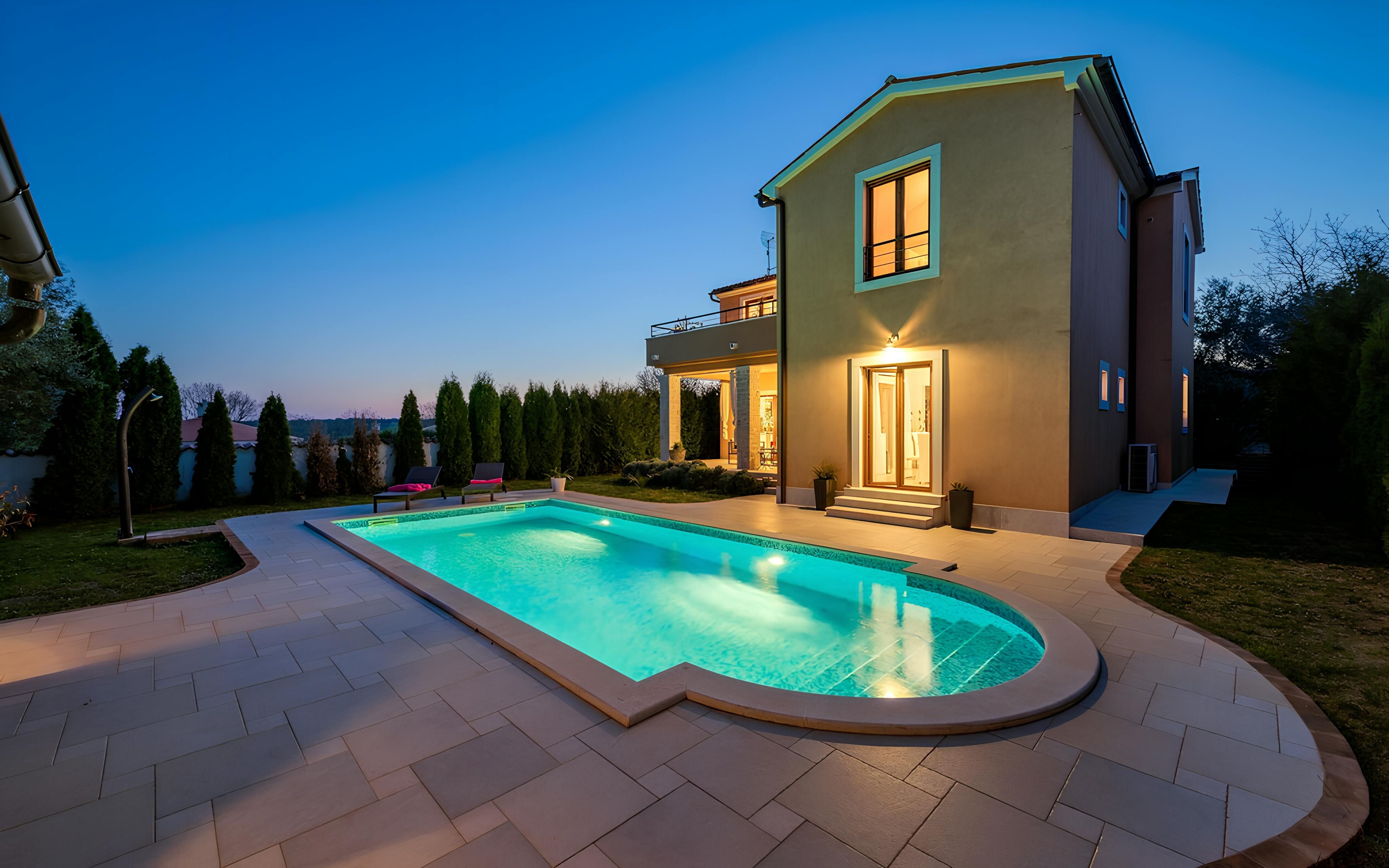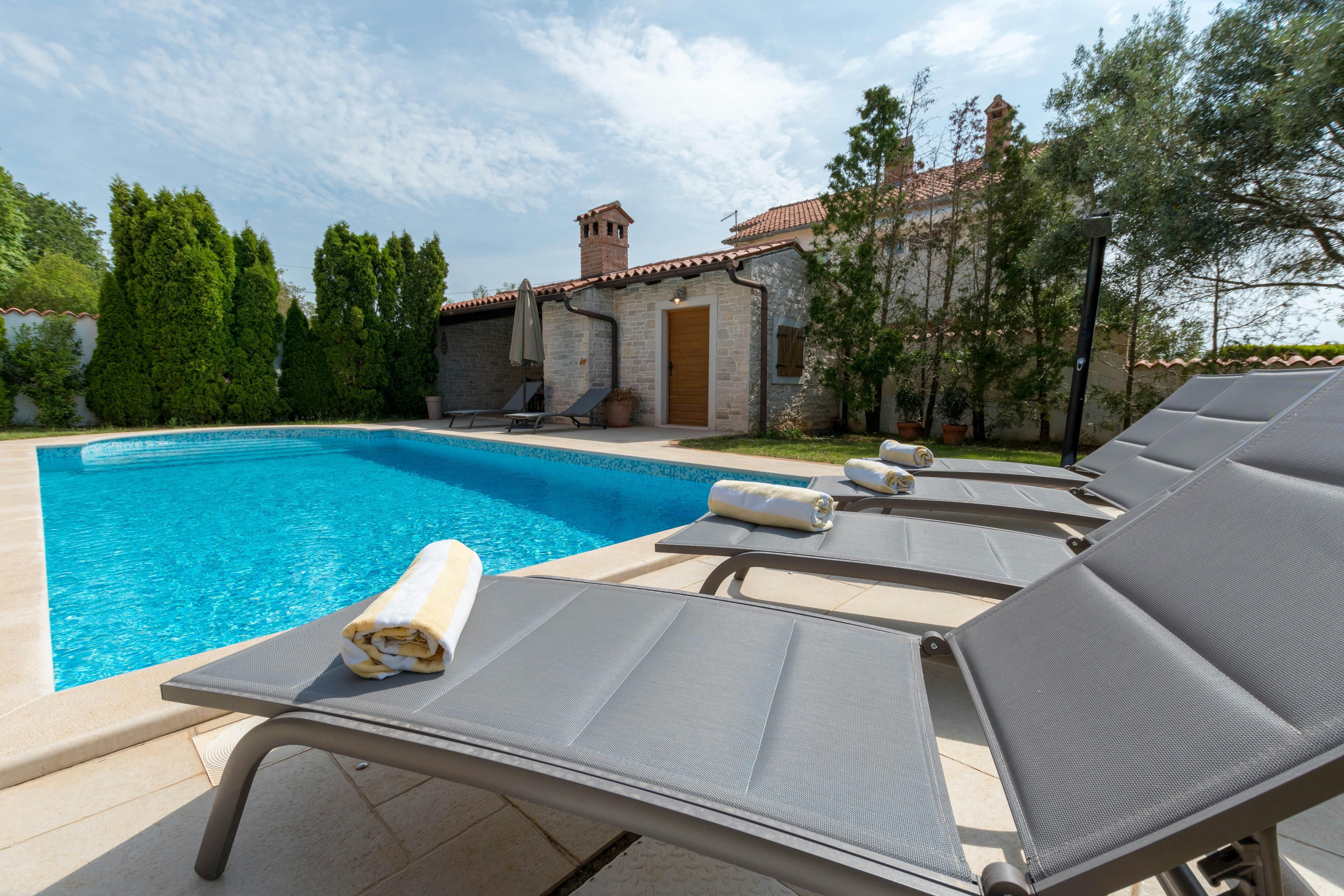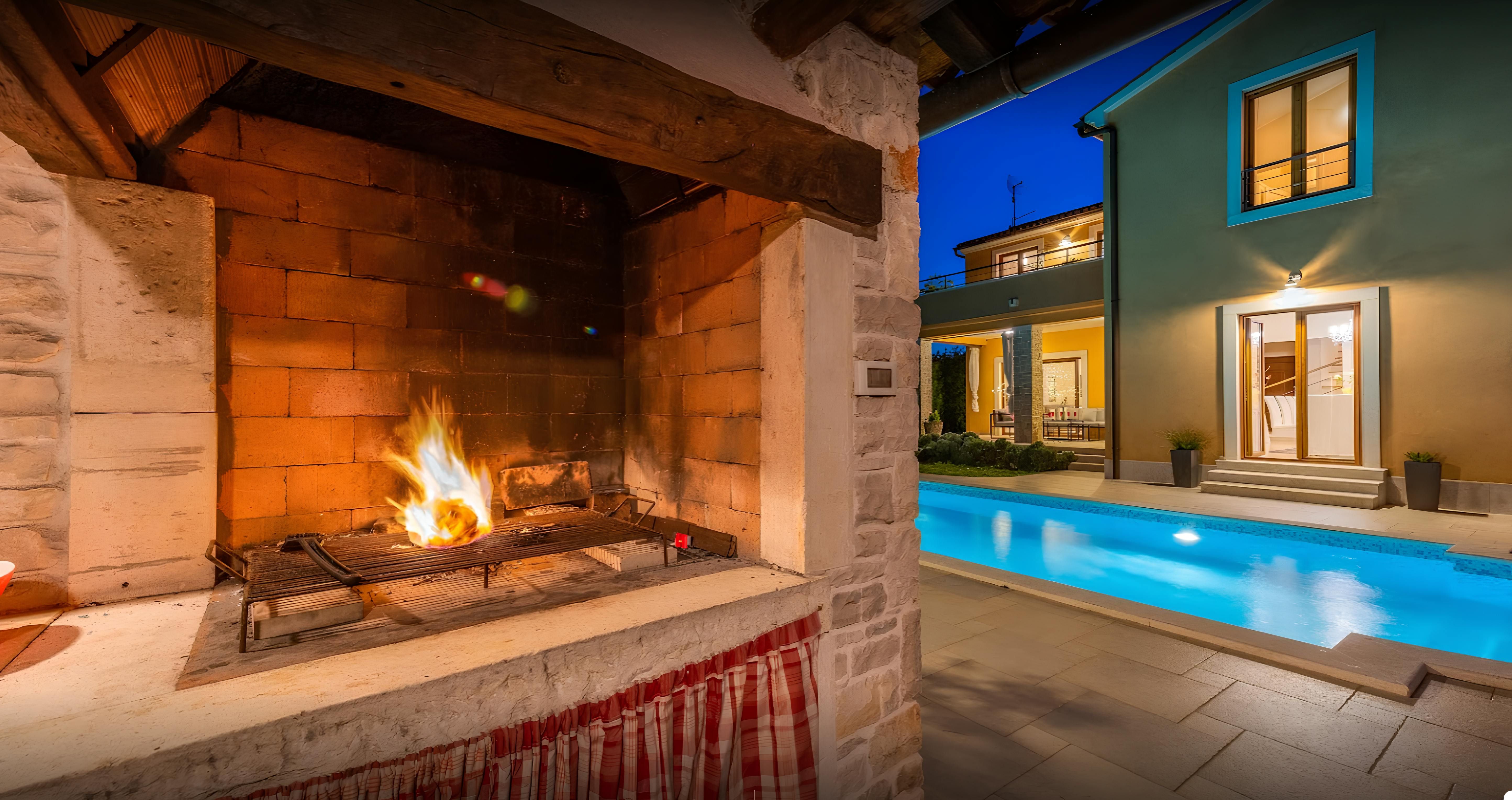 This home is in the small village of Peruski on the east coast of Istria. With its traditional aesthetic ambience and sunny outdoor space, this is perfect for guests looking for comfort. The fenced outdoor area has a swimming pool, comfortable sunbeds, and a chill-out rooftop lounge right next to the house. Guests can catch a glimpse of the Adriatic Sea. The nearest small supermarket is just a ten-minute walk away, and there is also a wine shop just 500 meters away. The rocky and pebbly beaches found in the area around Duga Uvala are only five minutes away by car.