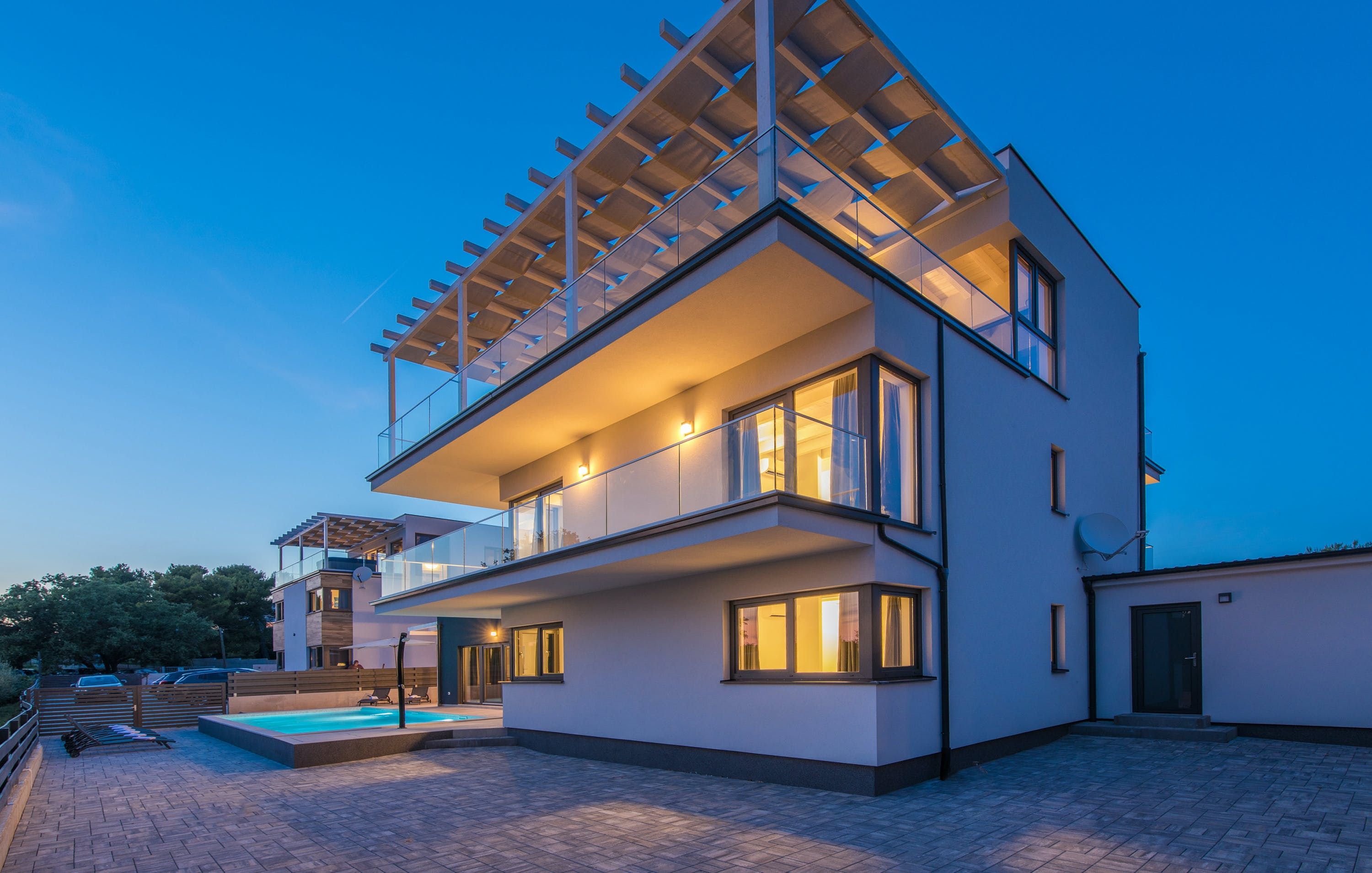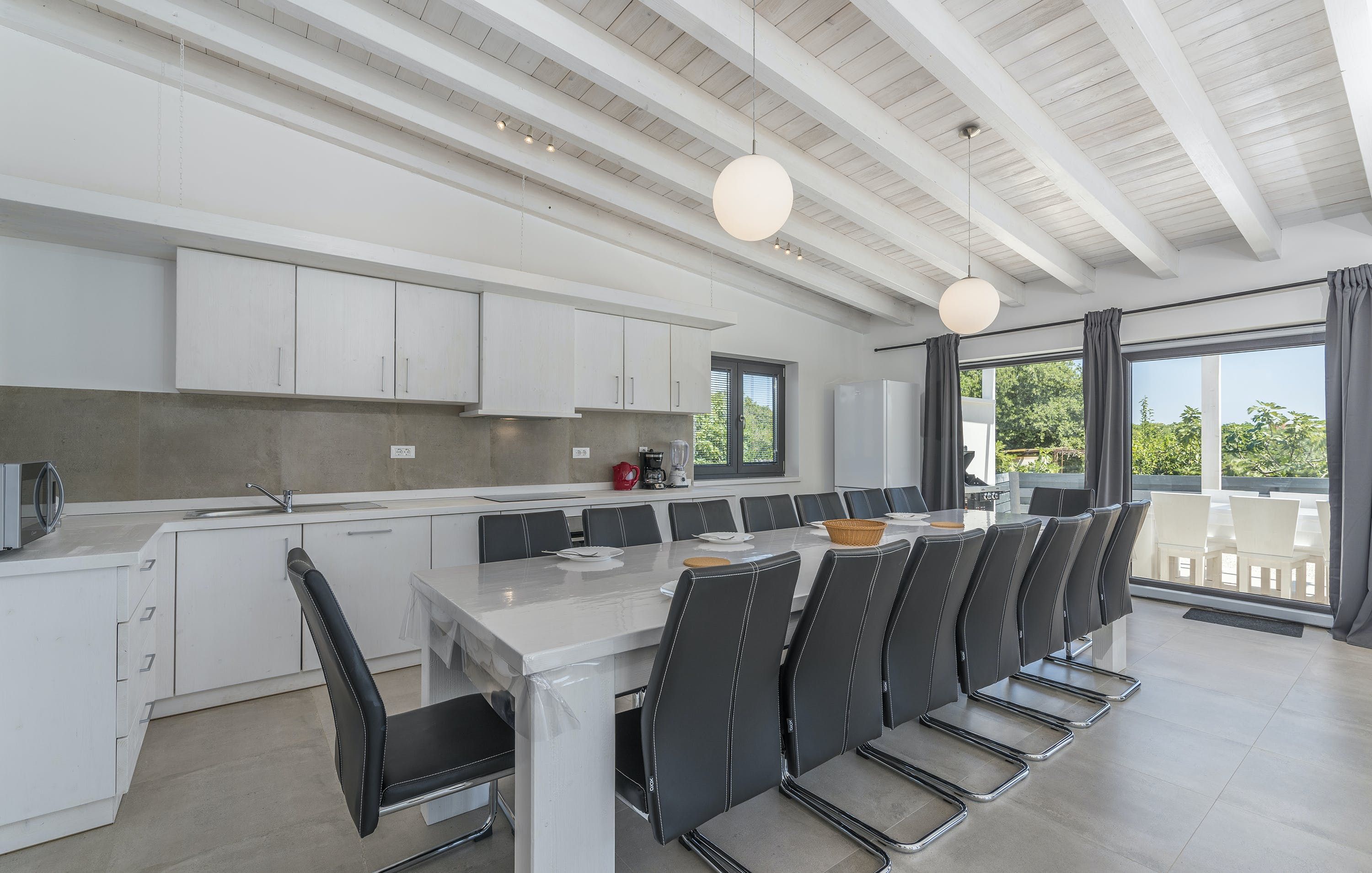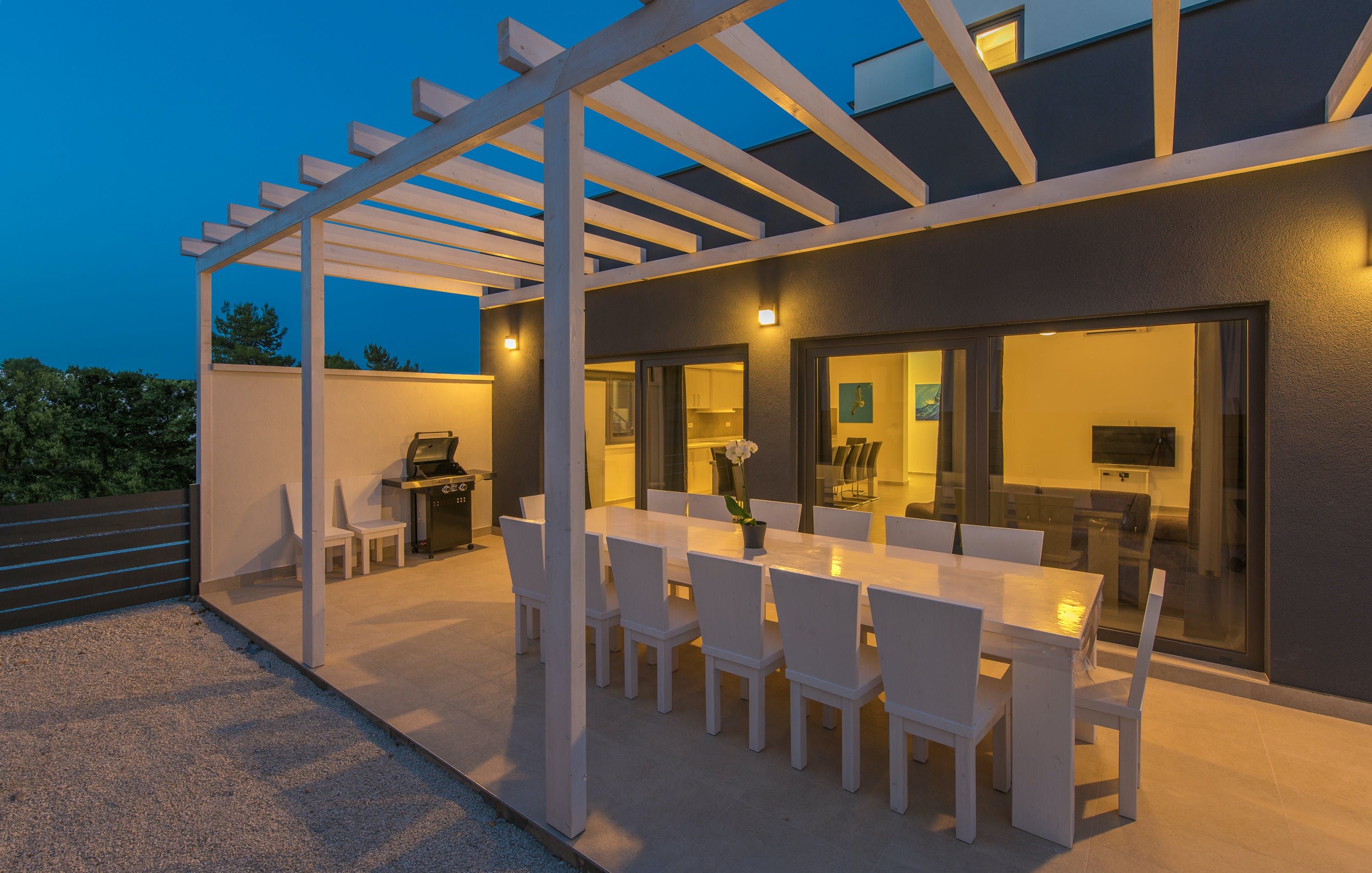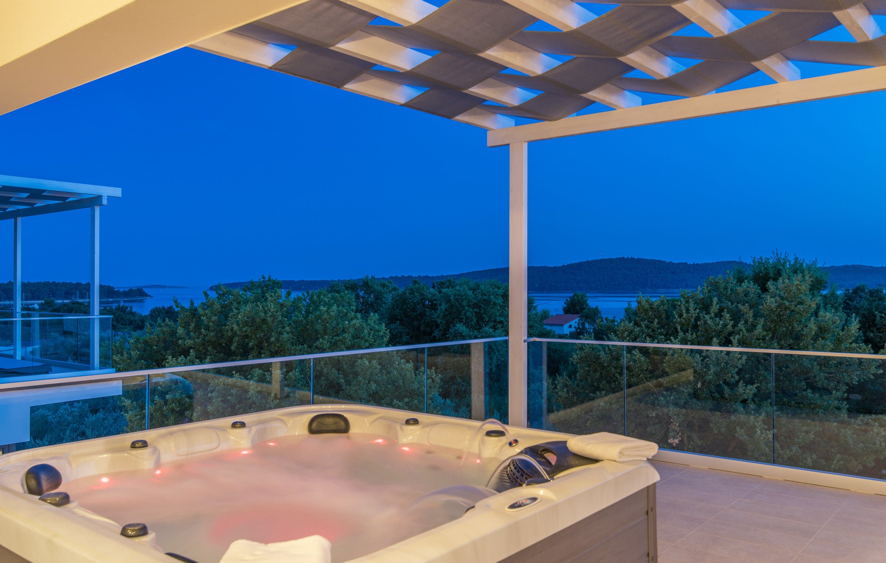 This villa is a stunning, modern vacation home located just 300 meters from the sea in the southern region of Istria. This luxurious property offers a range of exclusive amenities, including multiple terraces and balconies with stunning views, a 36m² pool, and a whirlpool for ultimate relaxation. The well-kept grounds offer privacy despite having direct neighbors. The open-plan living/dining and kitchen area is spacious and ultra-modern, with a trendy white look. The villa features six air-conditioned bedrooms, each with a modern bathroom en suite. Highlights include the sauna with a view of the roof terrace and a small fitness area. With its proximity to Pula and Medulin, guests can enjoy cultural and entertainment options while adventure lovers will appreciate the nearby "Kap Kamenjak" Nature Park in Premantura. The nearest airport in Pula is just 20 minutes away by car. This home is perfect for luxurious vacations with friends or several families seeking quality time in an exclusive location by the sea.