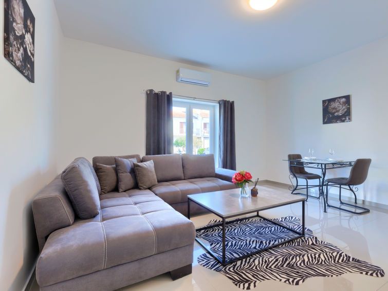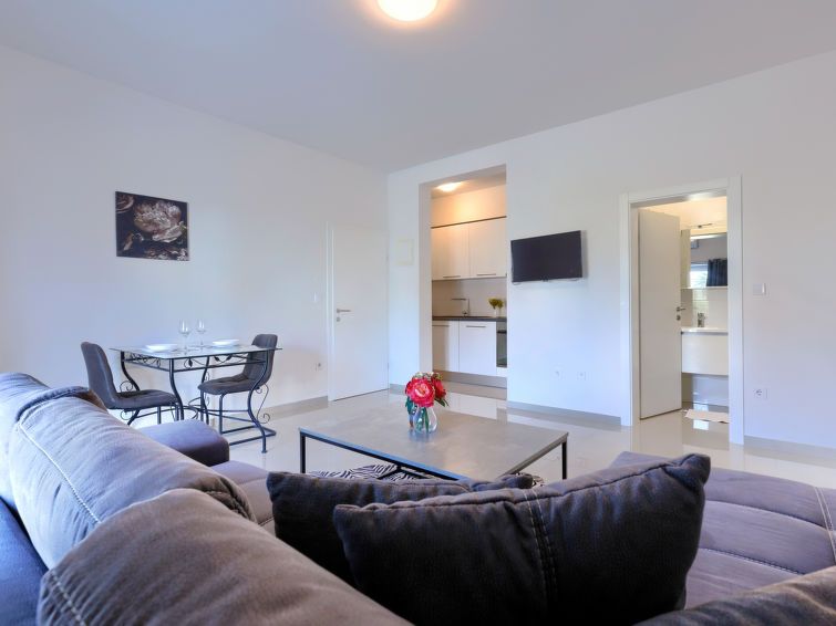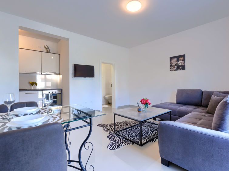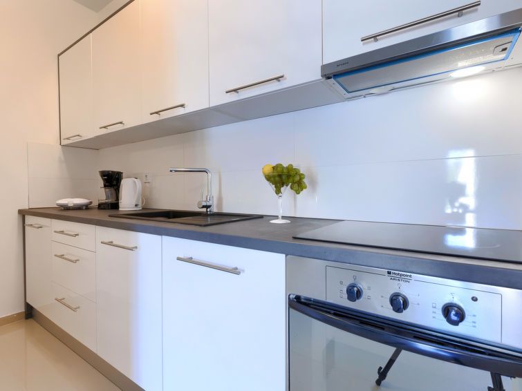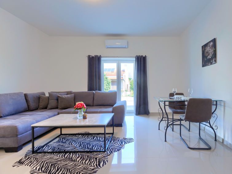 "Amra 3", 1-room studio 20 m2, on the ground floor. Simple furnishings: living/dining room with 1 double sofabed (160 cm, length 200 cm), satellite TV and air conditioning. Open kitchen (oven, 4 ceramic glass hob hotplates, toaster, kettle, electric coffee machine). Shower/WC. Forced-air heating.
