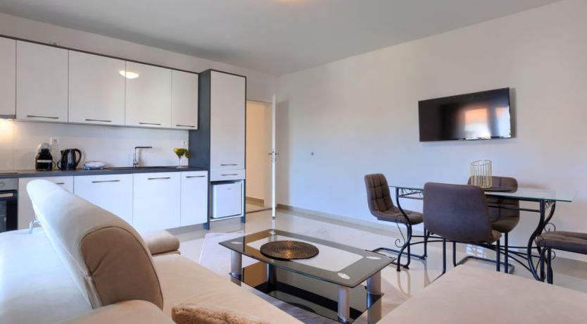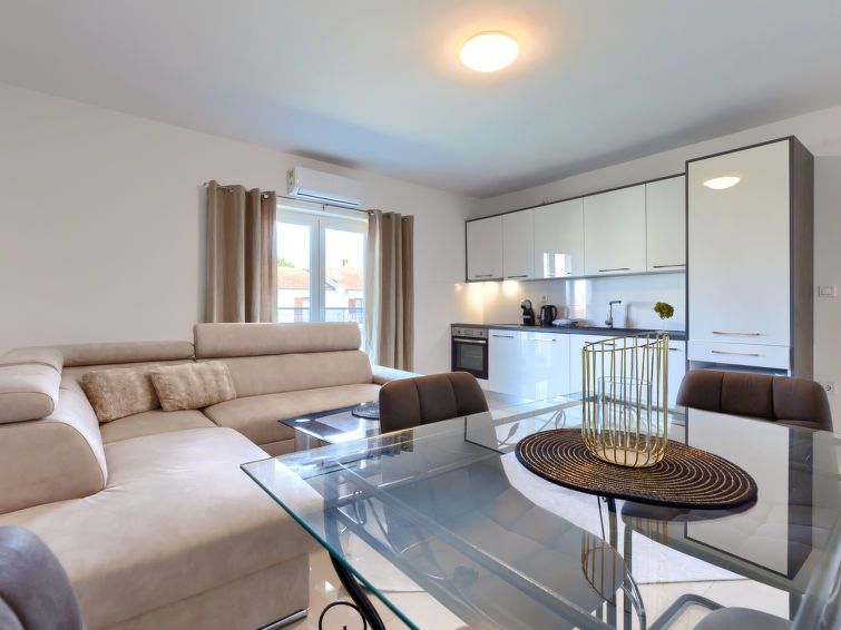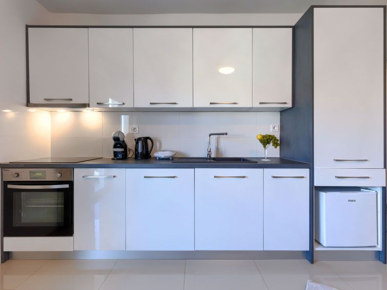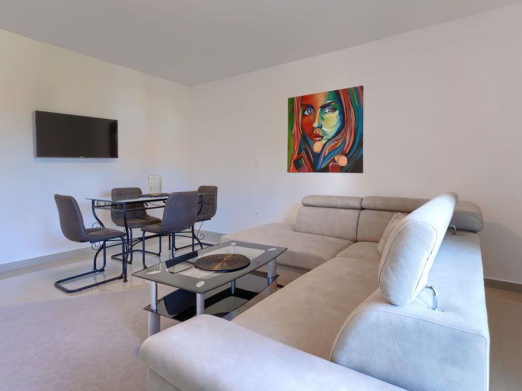 "Amra 4", 3-room apartment 40 m2, on the upper floor. Cosy furnishings: living/dining room with 1 sofabed (120 cm, length 200 cm), satellite TV and air conditioning. Exit to the terrace. 1 room with 1 sofabed (120 cm, length 190 cm). 1 room with 1 french bed (160 cm, length 200 cm).