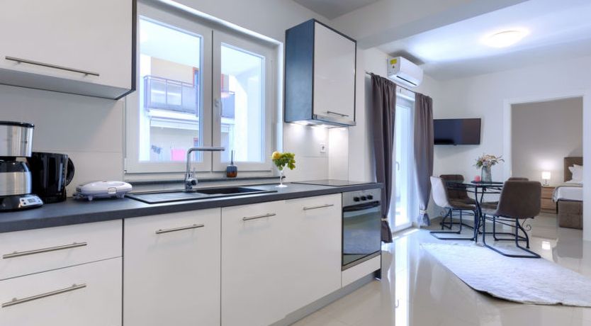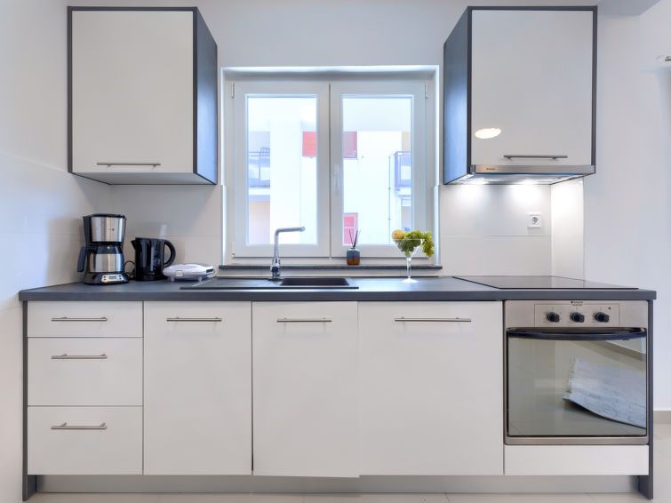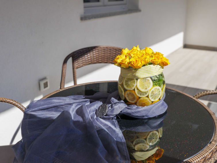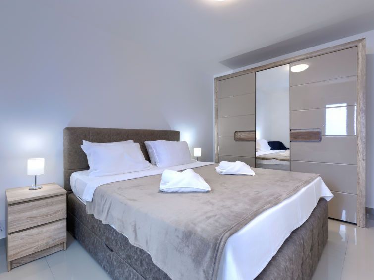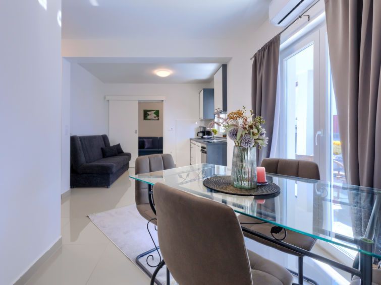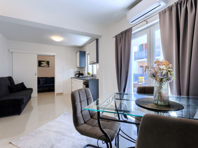 "Amra 5", 3-room apartment 40 m2, on the upper floor. Cosy furnishings: living/dining room with 1 sofabed (120 cm, length 200 cm), satellite TV and air conditioning. Exit to the terrace. 1 room with 1 sofabed (120 cm, length 190 cm). 1 room with 1 french bed (160 cm, length 200 cm).