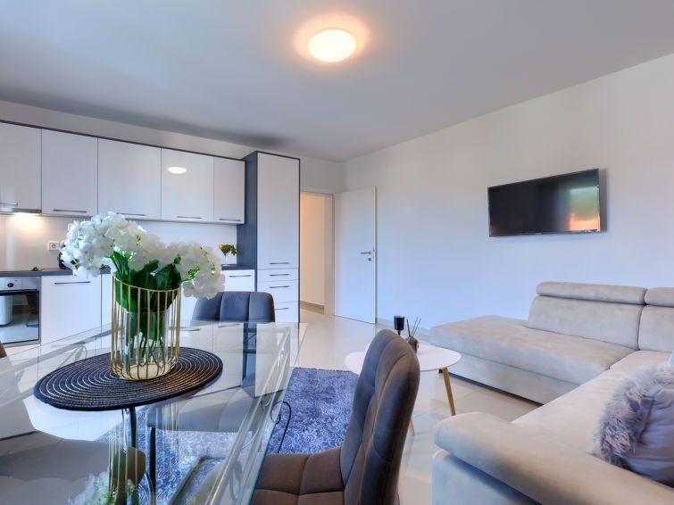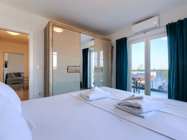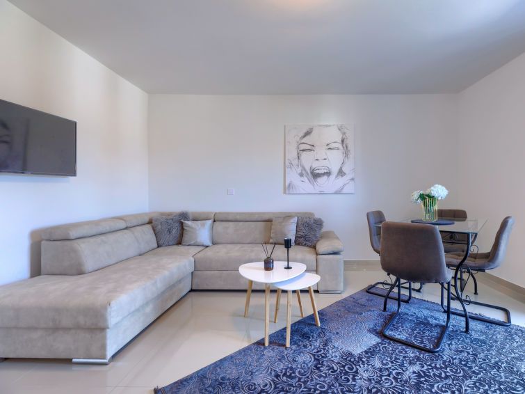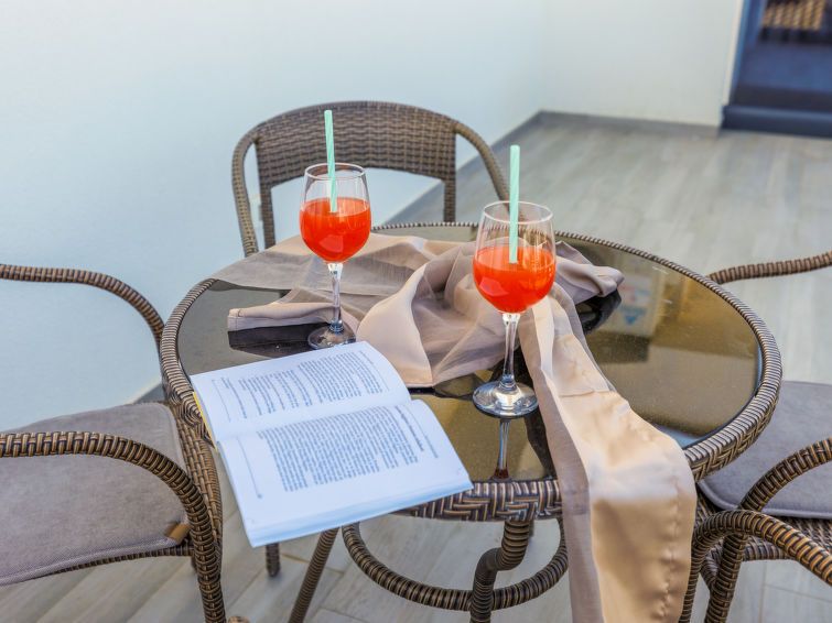"Amra 6", 3-room apartment 40 m2, on the top floor. Cosy furnishings: living/dining room with 1 sofabed (120 cm, length 200 cm), satellite TV and air conditioning. Exit to the terrace. 1 room with 1 sofabed (120 cm, length 190 cm). 1 room with 1 french bed (160 cm, length 200 cm), air conditioning.
