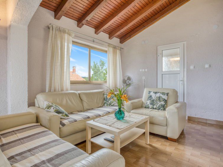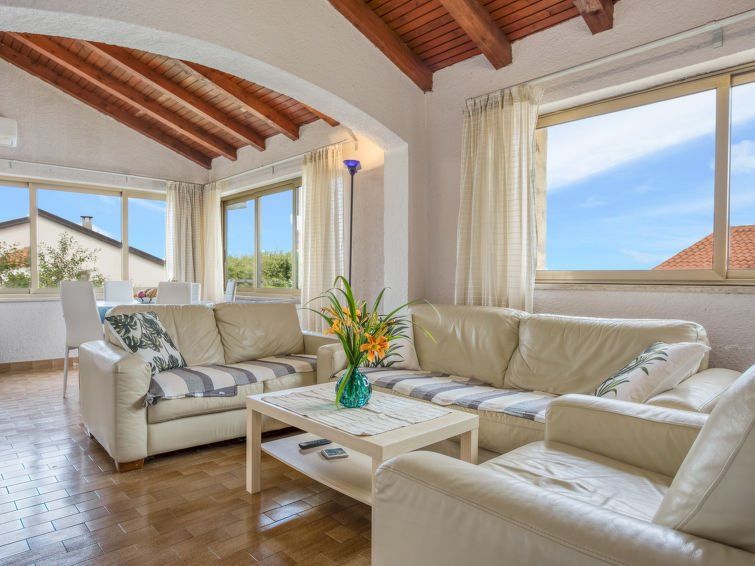 4-room apartment 94 m2 on 1st floor. Living/dining room with satellite TV (flat screen), air conditioning. 1 room with 1 double bed (2 x 90 cm, length 200 cm). Exit to the terrace. 1 room with 2 beds (90 cm, length 200 cm). 1 room with 1 bed (80 cm, length 200 cm), 1 french bed (160 cm, length 200 cm).