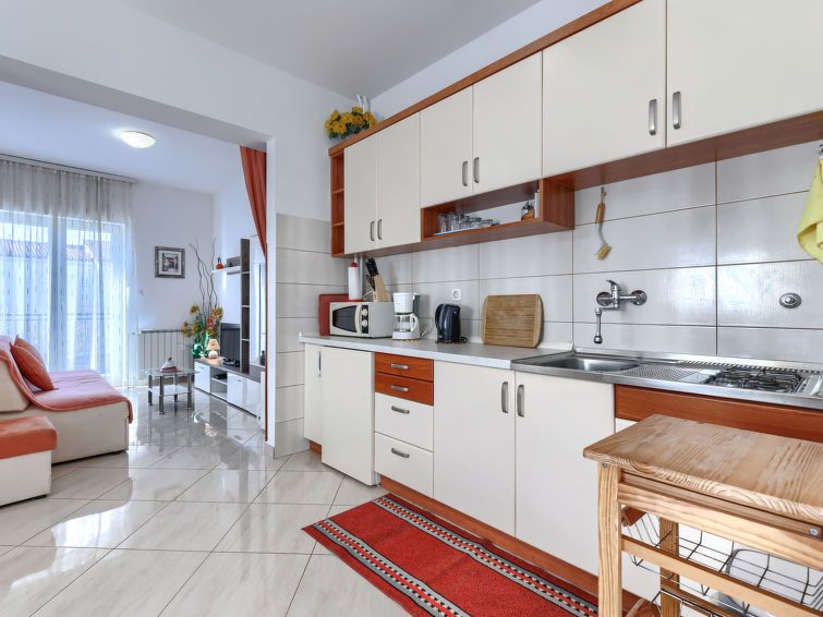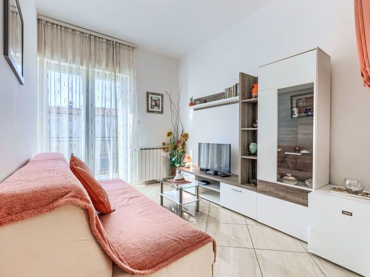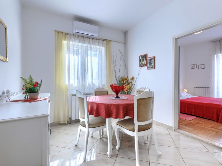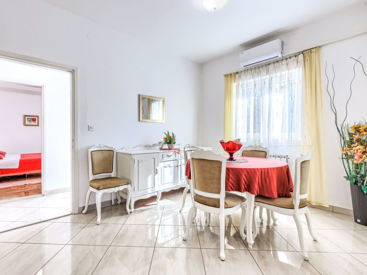 3-room apartment 70 m2, on the upper ground floor. Cosy furnishings: living/dining room with satellite TV and air conditioning. Exit to the terrace. 1 room with 1 french bed (160 cm, length 200 cm). Exit to the terrace. 1 room with 1 french bed (180 cm, length 200 cm). Exit to the terrace.