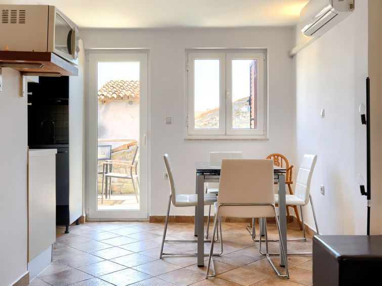 On arrival the fridge was broken and there were leftovers from food in the fridge and in the pantry. Coffee machine is very calcified, needed half an hour for 4 cups! The cutlery was not complete for 4 people! Air condition in the upper part didn't work for the first 4 days and 2 people had to sleep on the couch. There is no mirror in the upper bathroom and if you are taller than 1 meter 60 cm you could only shower while sitting. Plus,: New fridge and the apartment clean.