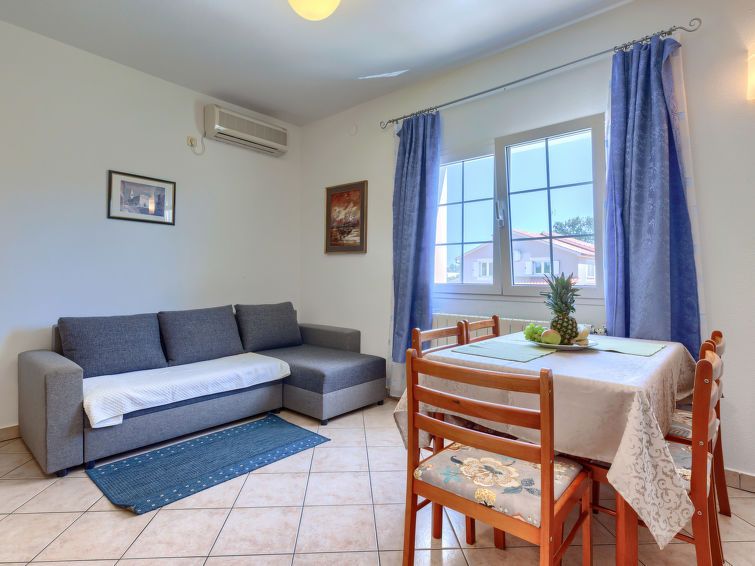 2-room apartment 50 m2 on 1st floor. Living/dining room with satellite TV and air conditioning. 1 room with 1 double bed (2 x 90 cm, length 200 cm). Open kitchen (4 hot plates, microwave). Shower/bidet/WC. Facilities: Internet (WiFi, free).