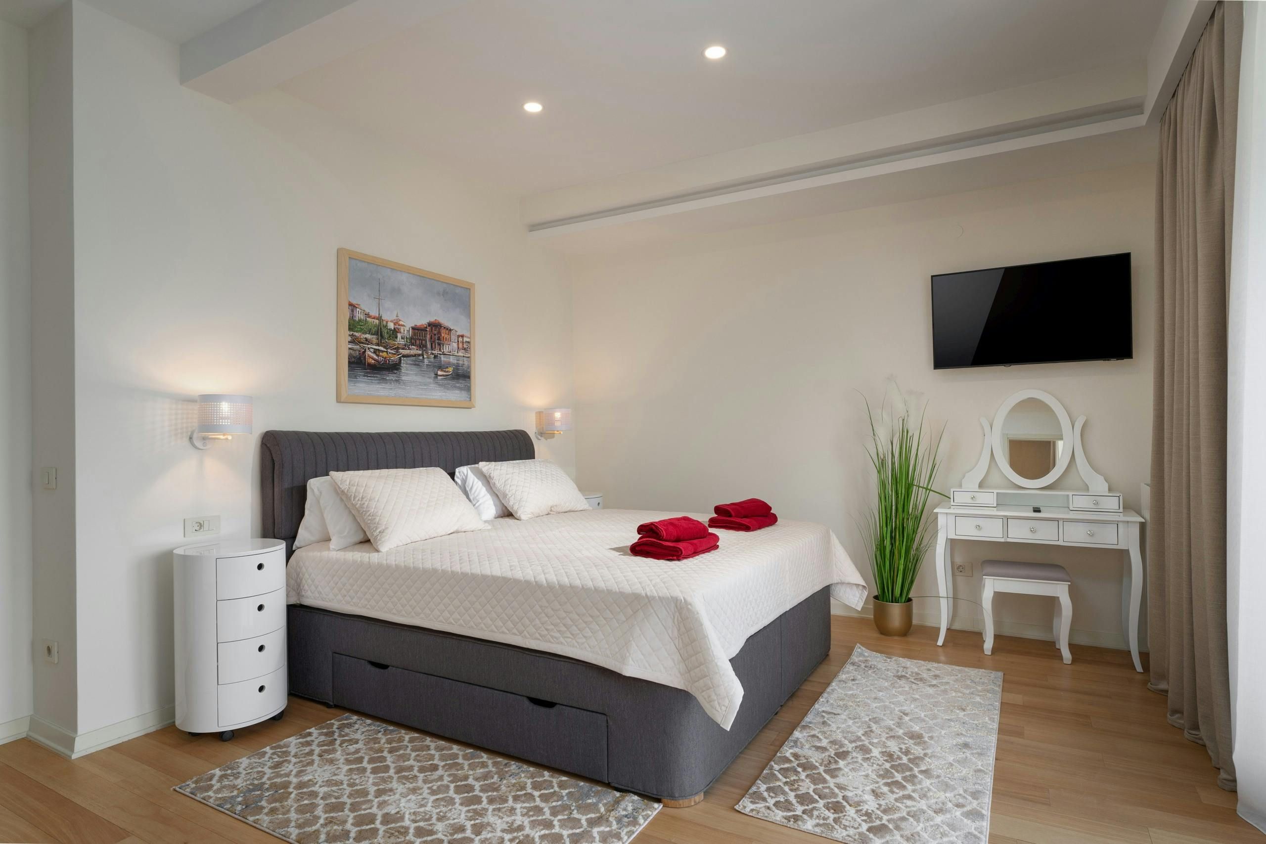 Located in the popular coastal resort of Poreč, this home has everything you need for a happy holiday. There’s a pool for swimming laps or lounging, a shaded terrace for alfresco dining, and plenty of space to stretch out in the comfortable, colourful rooms. And whether you’re here for sightseeing or taking things slow, we think you’ll love the location. You’ll be walking distance from shops, eateries, and (best of all) the beach, so you won’t have to go far to find the essentials for a blissful break in the sunshine.