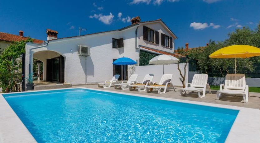 Hello The house was great, 3 bedrooms upstairs with 1 bathroom and 1 bedroom downstairs with bathroom, living room and kitchen. Everything was perfect, good layout of the house. Outside there was a covered large table where all 8 people could sit, as well as inside, but thanks to the weather we only ate outside. The pool was very well maintained and clean, enough loungers and a warm shower.