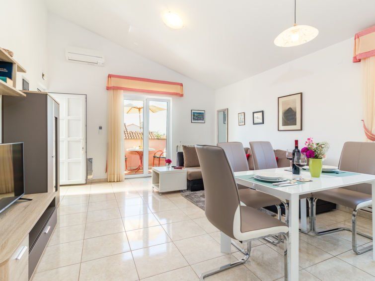 "Viktorija", 2-room apartment 48 m2 on 1st floor. Living/dining room with 1 double sofabed (140 cm, length 200 cm), satellite TV and air conditioning. Exit to the balcony. 1 room with 1 double bed. Open kitchen (4 ceramic glass hob hotplates, toaster, kettle, microwave, freezer, electric coffee machine).