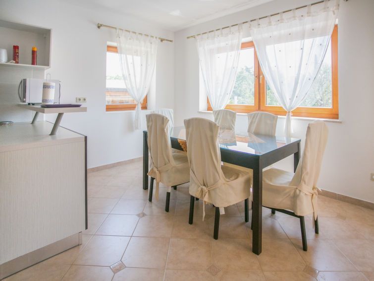 7-room house 260 m2 on 2 levels. Spacious, cosy furnishings: living/dining room with satellite TV and air conditioning. Exit to the terrace. 2 rooms, each room with 1 french bed (180 cm, length 200 cm). Exit to the terrace. 1 room with 1 french bed (180 cm, length 200 cm). Open kitchen (oven, dishwasher, 1 ceramic glass hob hotplate, 3 gas rings, toaster, kettle, microwave, freezer, electric coffee machine).