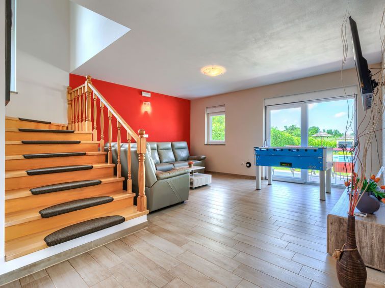 6-room house 180 m2 on 2 levels. Tasteful and cosy furnishings: living/dining room with kitchen corner, satellite TV and air conditioning. 2 rooms, each room with 1 french bed (160 cm, length 200 cm), shower/WC and satellite TV. Living/dining room with satellite TV and air conditioning.