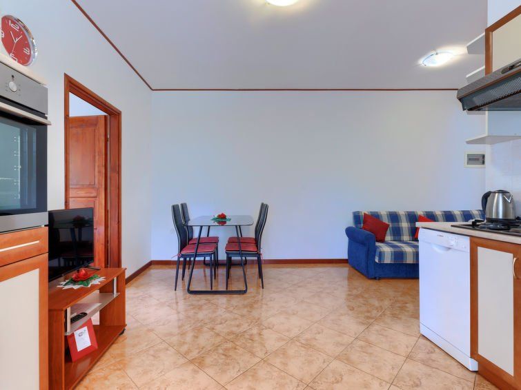 3-room apartment 49 m2, on the ground floor. Cosy furnishings: living/dining room with satellite TV and air conditioning. Exit to the terrace. 1 room with 1 french bed (160 cm, length 200 cm). 1 room with 1 french bed (160 cm, length 200 cm). Exit to the balcony. Open kitchen (4 hot plates, oven, dishwasher, freezer).