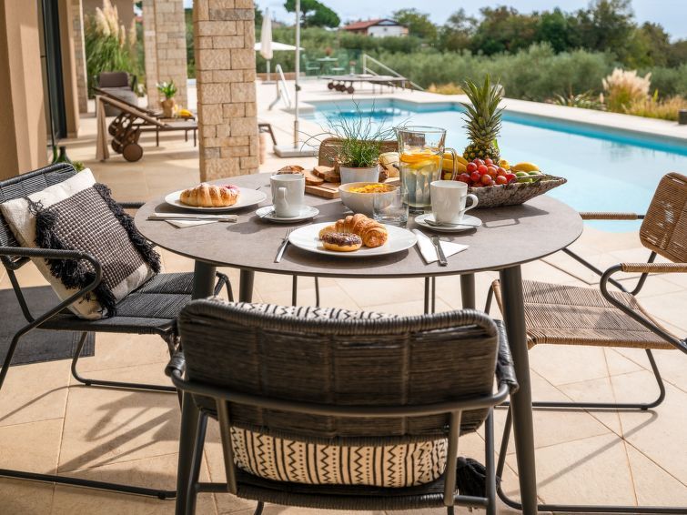 5-room villa 220 m2 on 2 levels. Spacious, modern and tasteful furnishings: living/dining room with open-hearth fireplace (only for decoration), satellite TV and air conditioning. Exit to the swimming pool. 1 room with 1 french bed (200 cm, length 200 cm), shower/WC, double hand-basin, satellite TV and air conditioning.