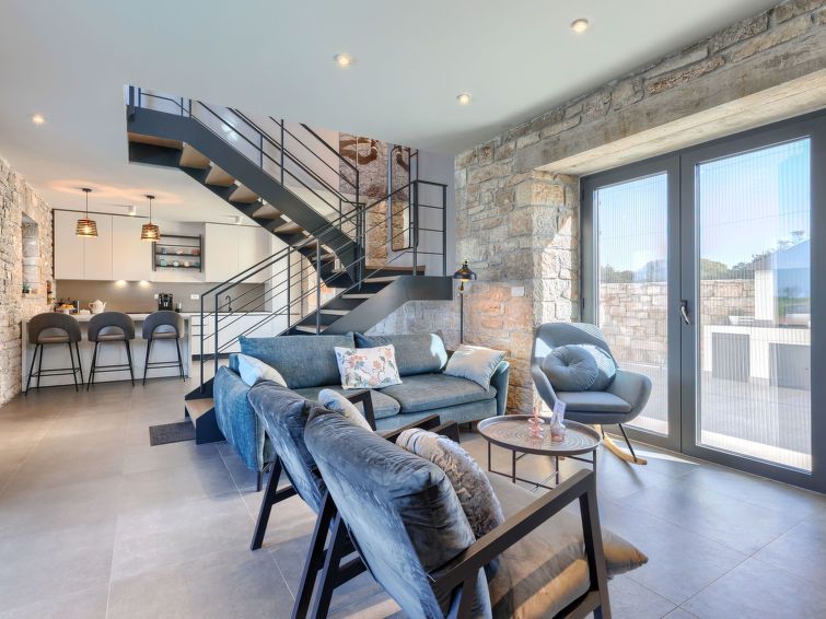 4-room house 145 m2 on 2 levels. Modern and tasteful furnishings: living/dining room with satellite TV and air conditioning. Exit to the swimming pool. 1 room with 1 double bed (160 cm, length 200 cm), shower/WC, satellite TV and air conditioning. Exit to the terrace. Open kitchen (oven, dishwasher, 4 ceramic glass hob hotplates, toaster, kettle, microwave, freezer, electric coffee machine).
