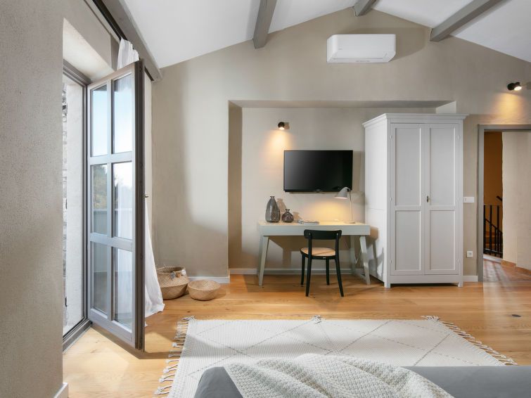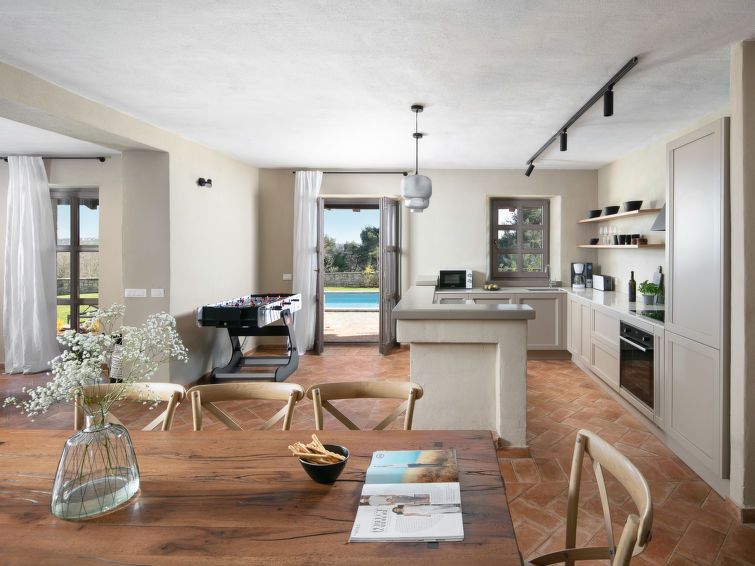 5-room villa 198 m2 on 2 levels. Living/dining room with satellite TV (flat screen), air conditioning. Exit to the swimming pool. 1 room with 1 double bed (2 x 90 cm, length 200 cm), satellite TV (flat screen), air conditioning. Exit to the terrace. Open kitchen (oven, dishwasher, 4 induction hot plates, toaster, kettle, microwave, freezer, electric coffee machine).
