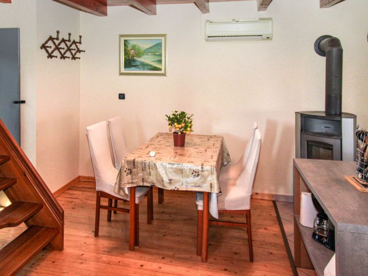 3-room house 78 m2 on 2 levels. Living/dining room with TV (flat screen), air conditioning. Open kitchen (oven, 1 ceramic glass hob hotplate, 3 gas rings, toaster, kettle, freezer). Shower/WC. Upper floor: 1 room with 1 french bed (160 cm, length 200 cm). Exit to the balcony. 1 room with 2 beds (90 cm, length 190 cm).