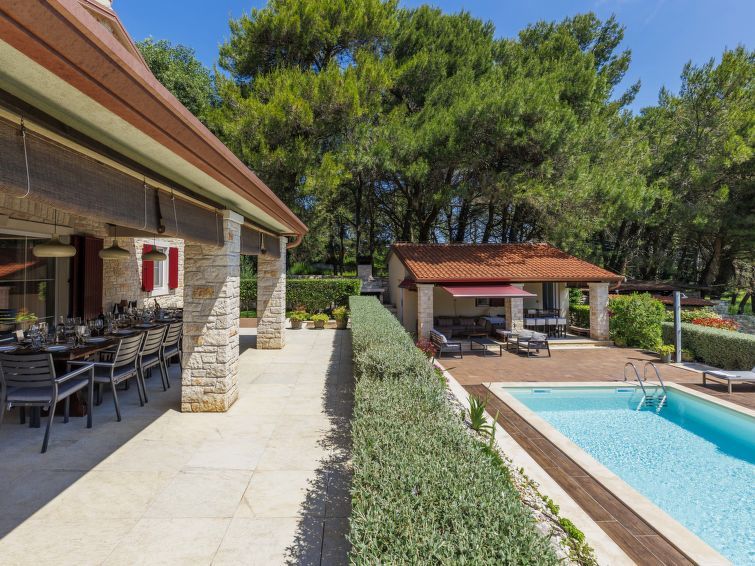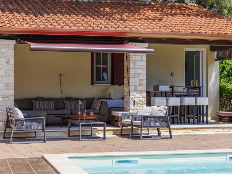 6-room villa 300 m2. Beautiful and tasteful furnishings: living/dining room with 1 double sofabed (160 cm, length 200 cm), satellite TV and air conditioning. Exit to the swimming pool. Living/dining room with 1 double sofabed (160 cm, length 200 cm). 1 room with 1 french bed (180 cm, length 200 cm), air conditioning.