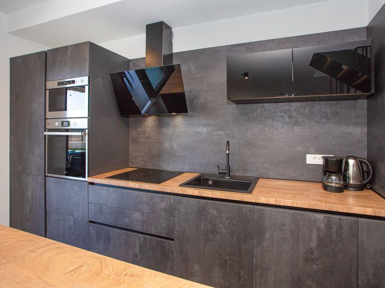 3-room villa 113 m2 on 2 levels. Very tasteful and stylish furnishings: open living/dining room with satellite TV, flat screen and air conditioning. Exit to the garden, to the terrace, to the swimming pool. Open kitchen (oven, dishwasher, 4 ceramic glass hob hotplates, toaster, kettle, microwave, freezer, electric coffee machine).