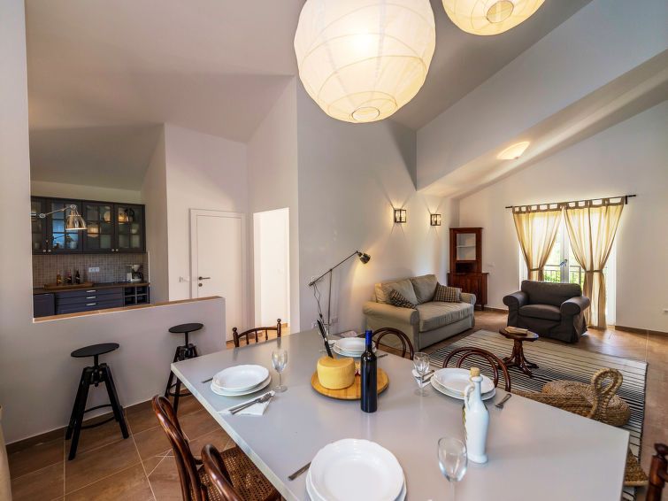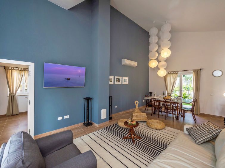 3-room house 120 m2. Beautiful furnishings: living/dining room with 1 double sofabed (160 cm, length 200 cm), satellite TV (flat screen), air conditioning. Exit to the terrace. 1 room with 1 french bed (160 cm, length 200 cm), air conditioning. 1 room with 1 french bed (160 cm, length 200 cm), shower/WC and air conditioning.