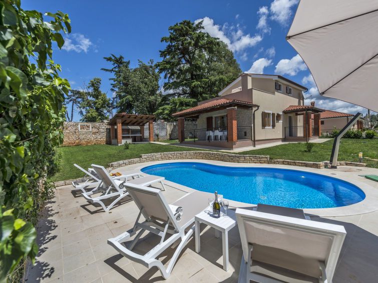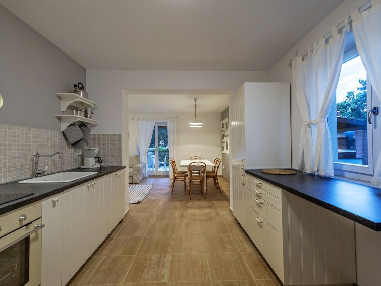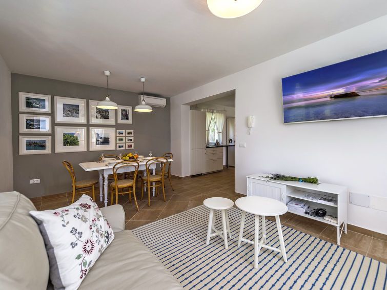4-room house 120 m2 on 2 levels. Beautiful furnishings: living/dining room with 1 double sofabed (160 cm, length 200 cm), satellite TV (flat screen), air conditioning. Exit to the terrace, to the swimming pool. 1 room with 1 french bed (160 cm, length 200 cm), air conditioning. Open kitchen (oven, dishwasher, 4 ceramic glass hob hotplates, freezer, electric coffee machine).