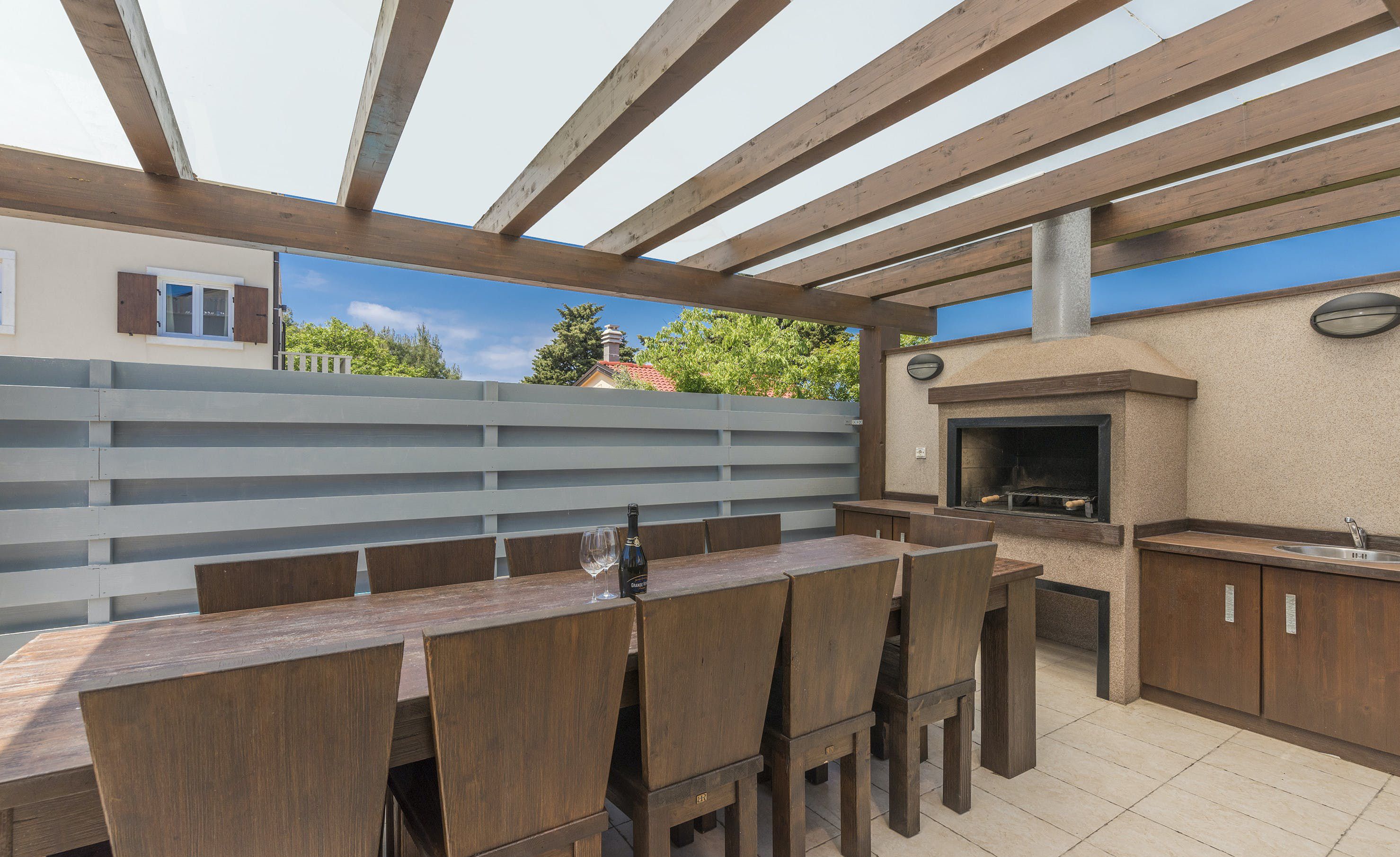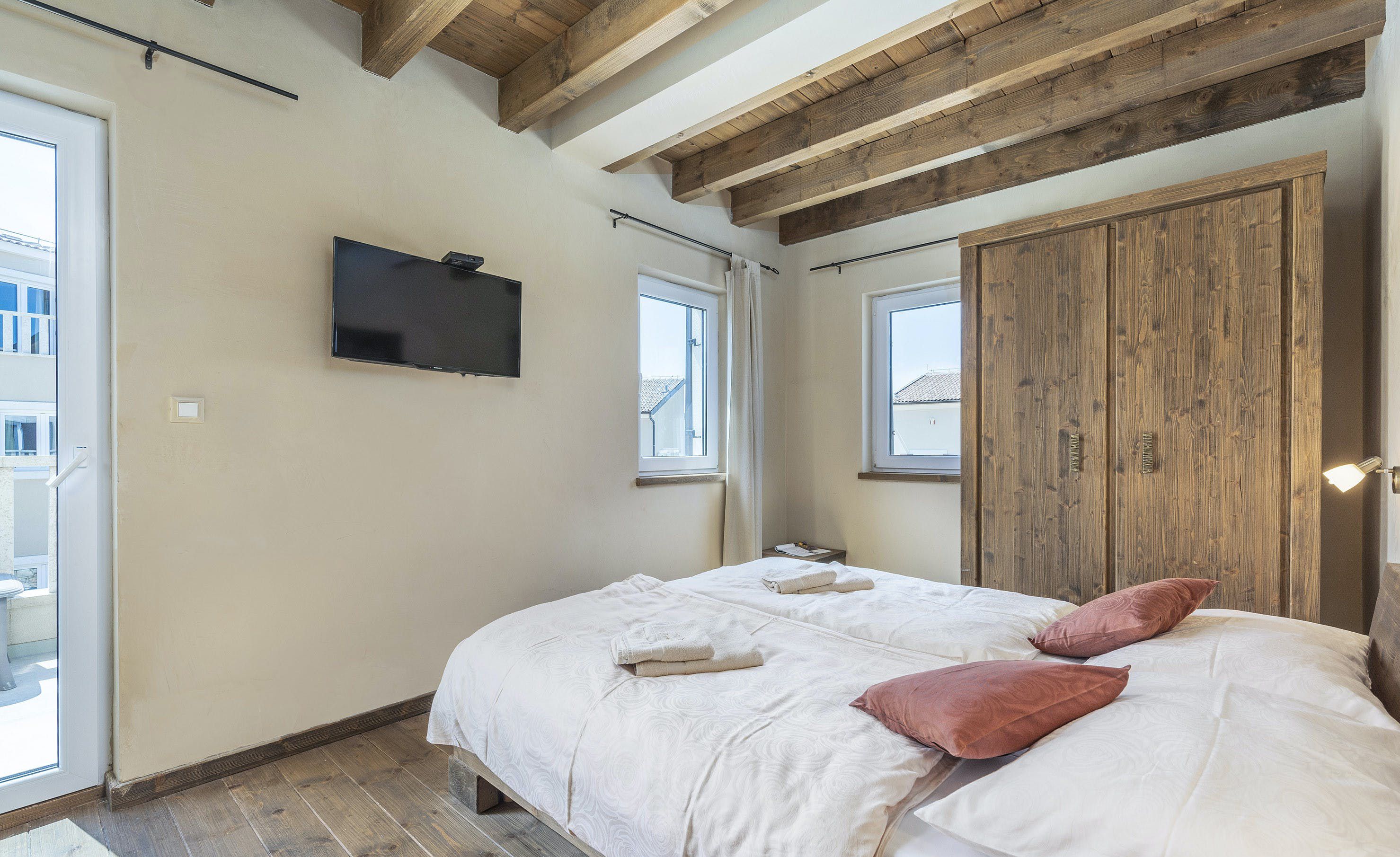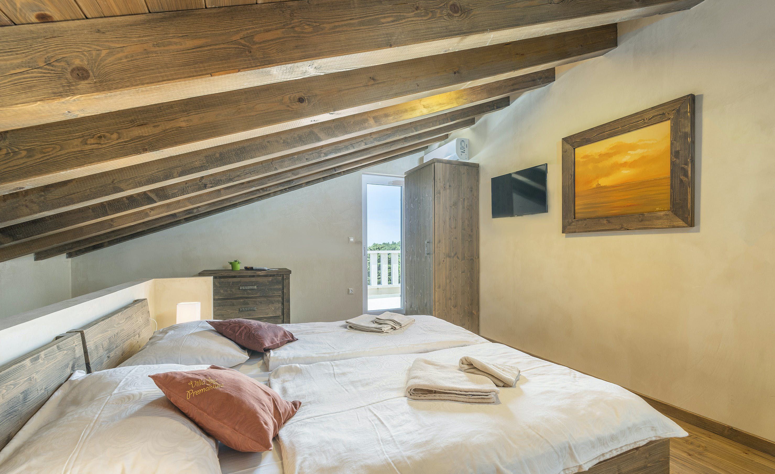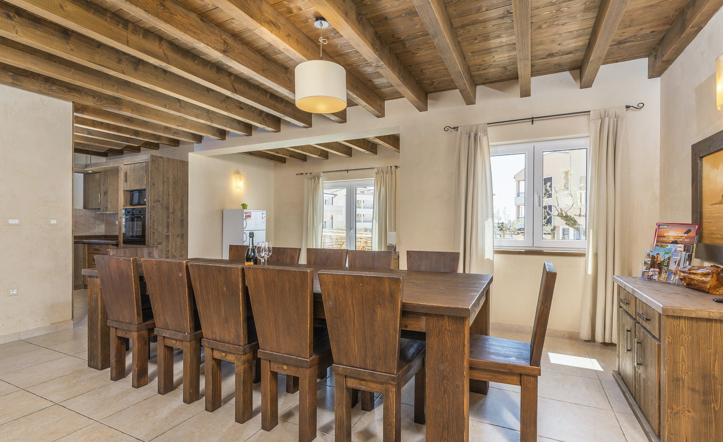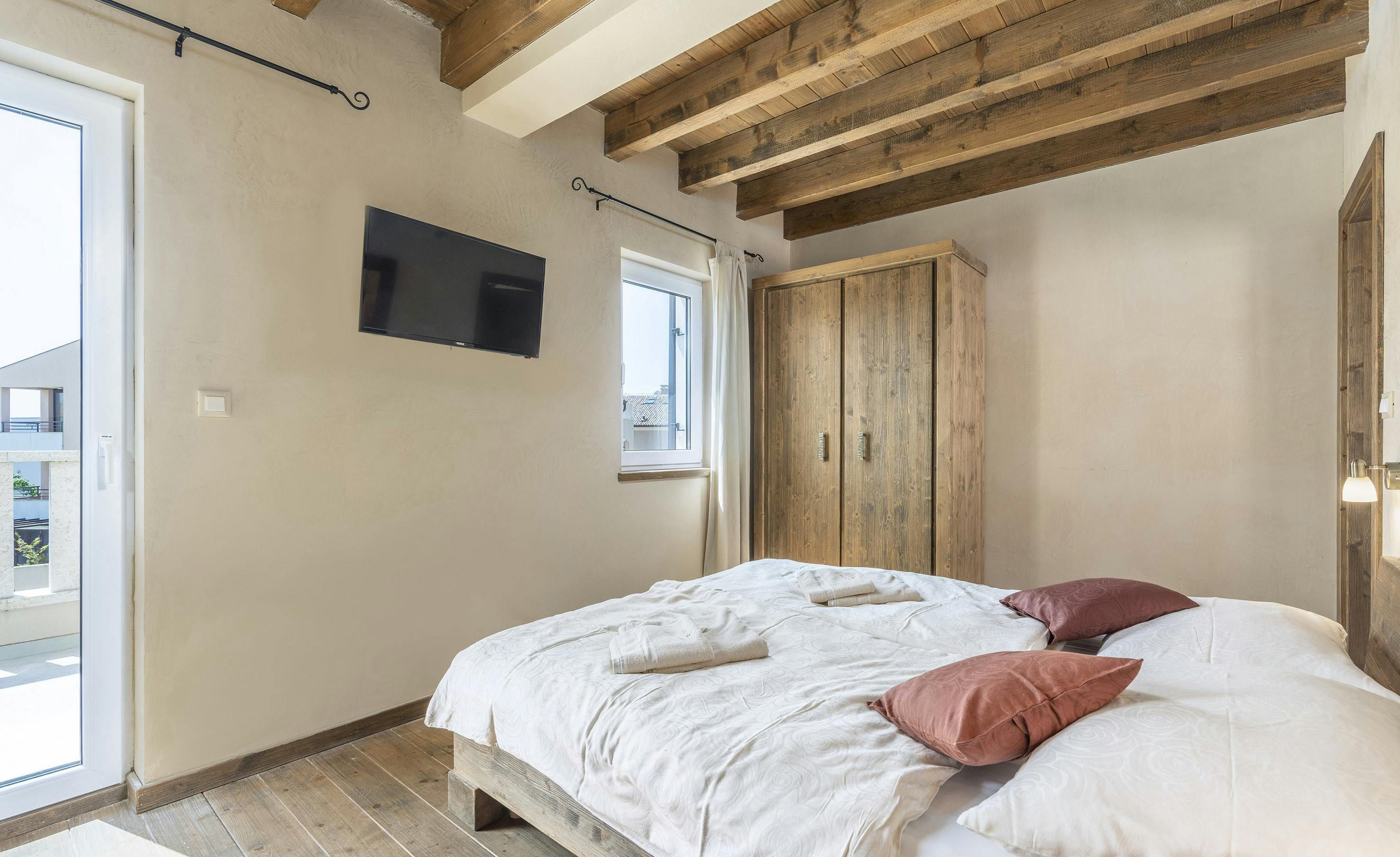This home is a modern and cosy family-friendly villa located near Premantura in Medulin, just 500m away from the nearest beach. The villa is decorated with harmonious colours and rustic-trendy furniture, creating a warm atmosphere. There are six discreetly furnished bedrooms, five with double beds and one with two single beds, all equipped with chic bathrooms, air conditioning, and LCD TVs. The ground floor features a modern, fully-equipped kitchen, dining room, living room with a fireplace, DVD player and stereo system. A sauna with a bath adds to the wellness experience. Outdoors has a covered terrace where you can enjoy grilled delicacies at a large table while overlooking the private pool. A Jacuzzi adds to the outdoor fun, along with a swing for kids. Nearby, the pedestrian area offers shopping opportunities and restaurants, while Cap Kamenjak offers rocky beaches, sandy bays, and turquoise seas. Pula is about 12km away, while Rovinj or Porec are perfect day trip options.