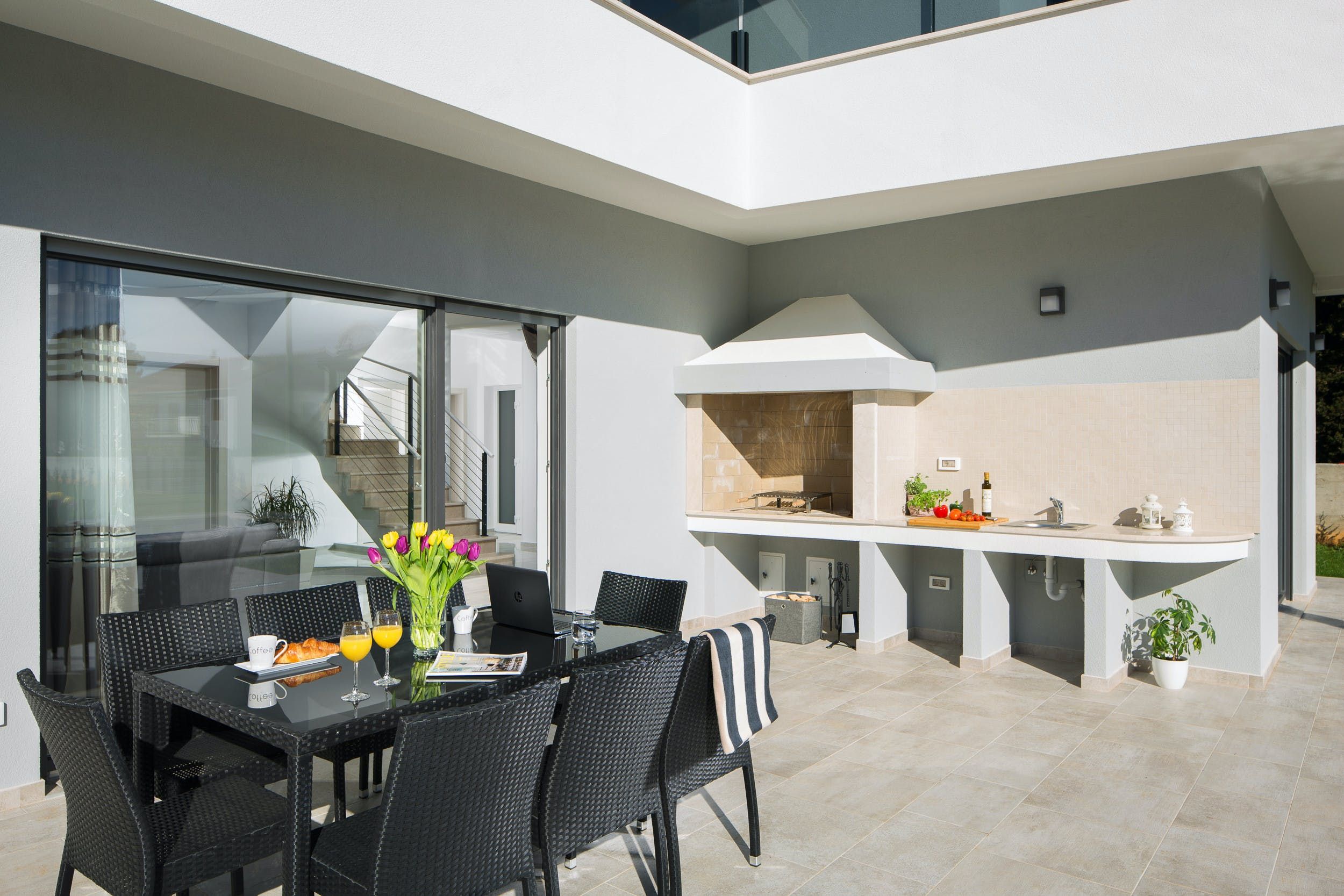Just a short stroll from the beach, this handsome home is perfectly located for a magical coastal getaway. You can alway walk to local restaurants, cafes and shops, while Pula is just a short drive away along with the beautiful nature park of Kap Kamenjak. And when it comes to respite and relaxation, this home ticks all the right boxes. There’s a private pool for blissful swims and a home spa with a sauna and Jacuzzi for pure relaxation. Kids will love the play area in the garden and the terrace lends itself perfectly to barbecue meals. Inside, the rooms make it easy to unwind with all of the bedrooms featuring en-suite bathrooms for optimum privacy.