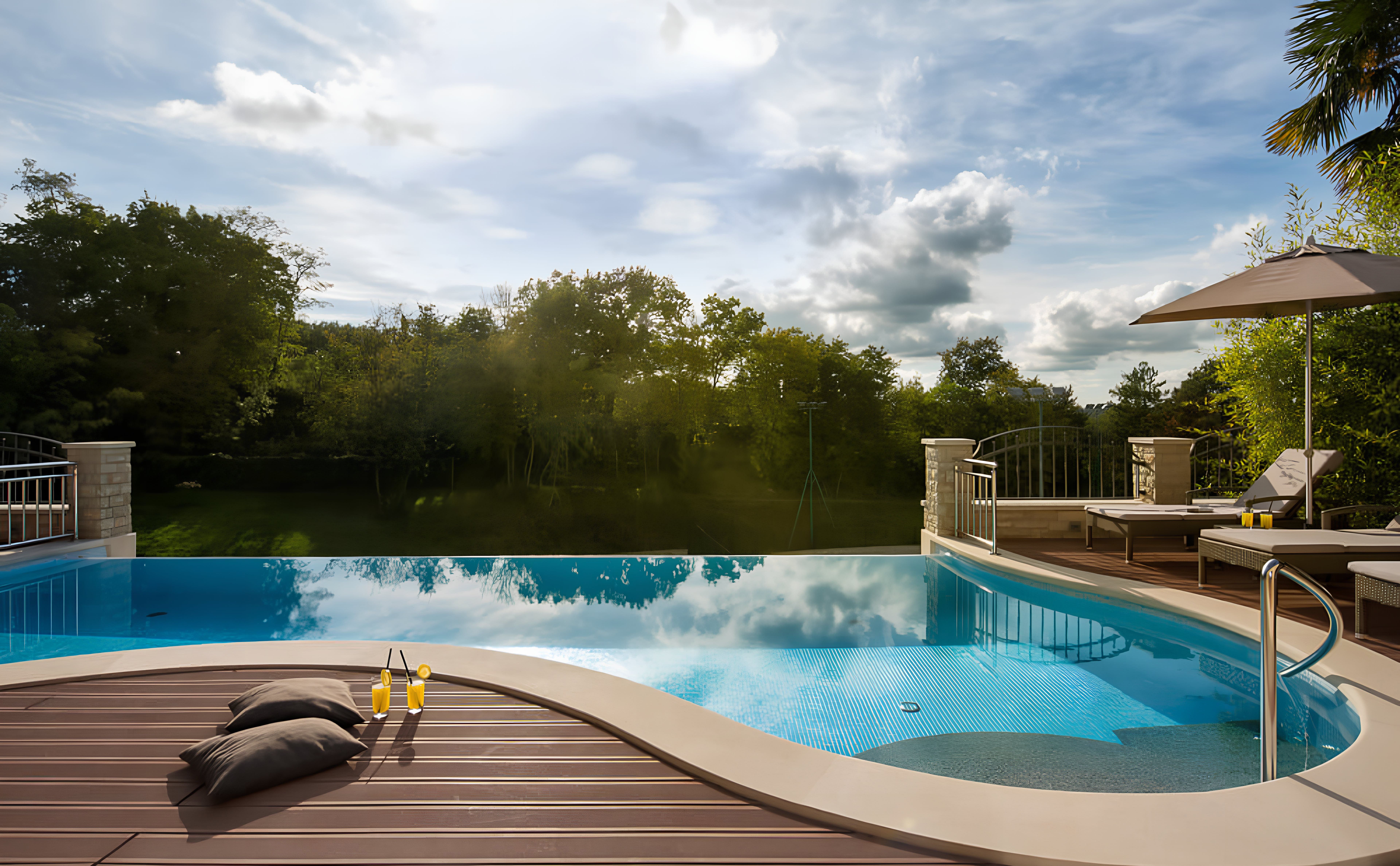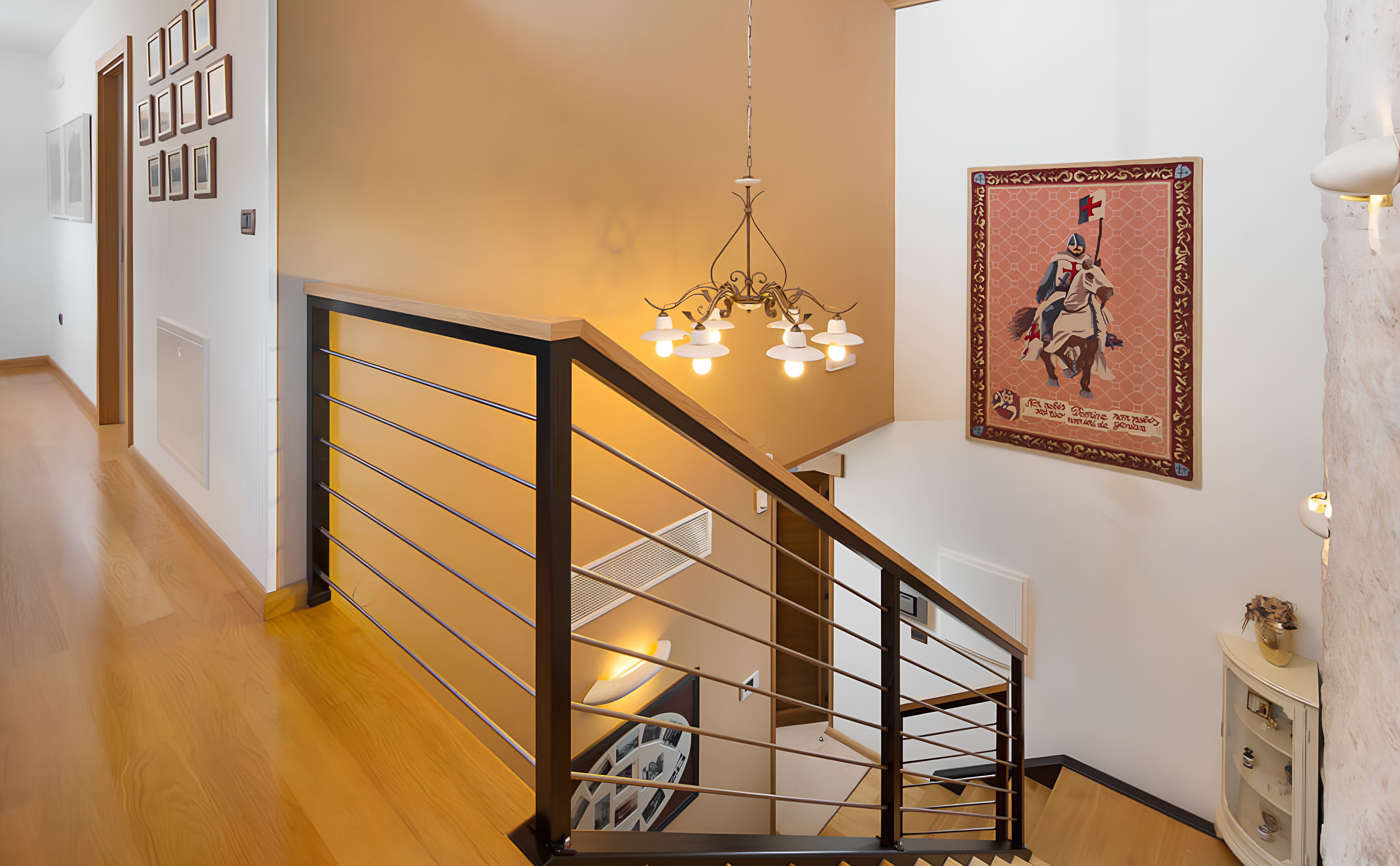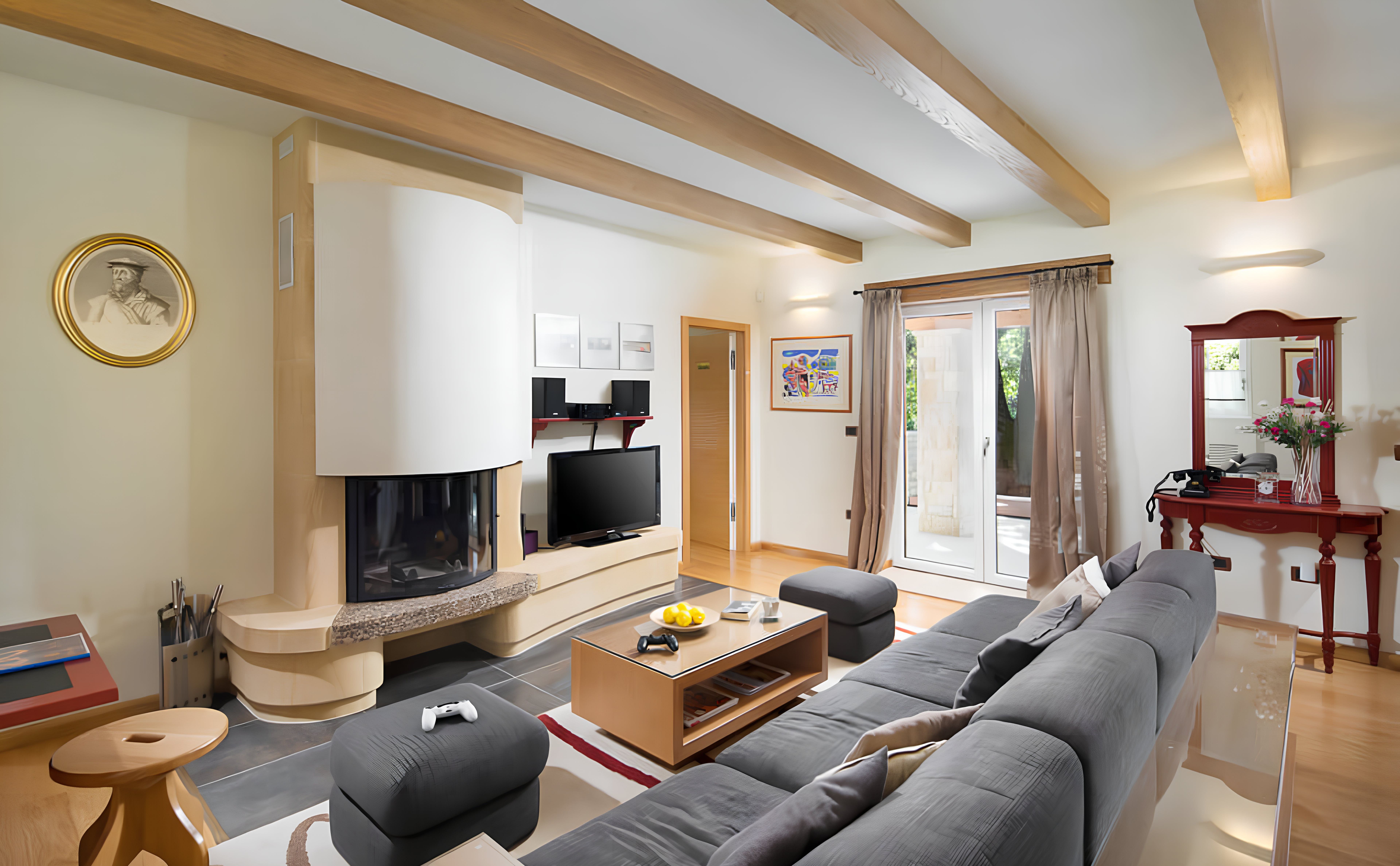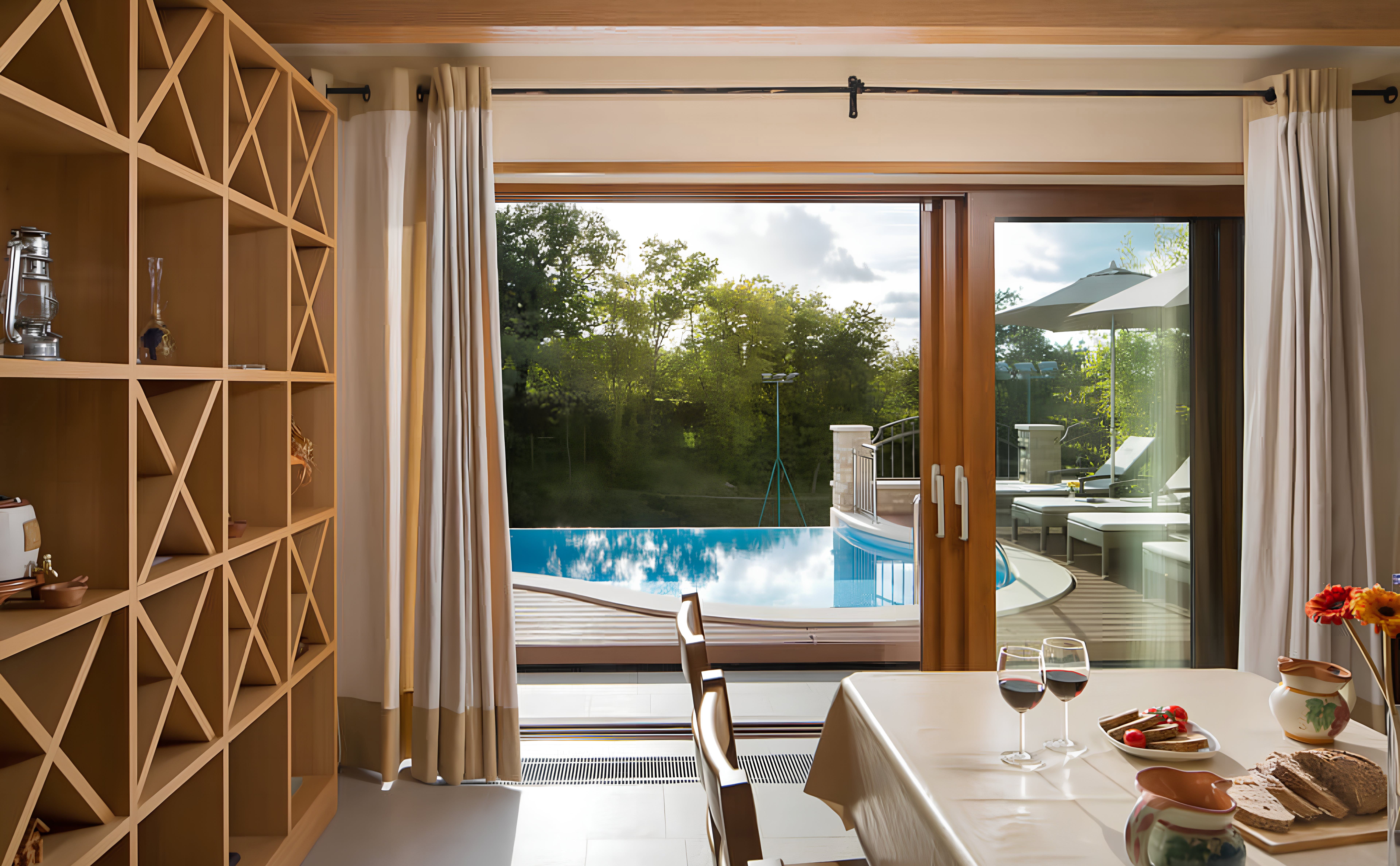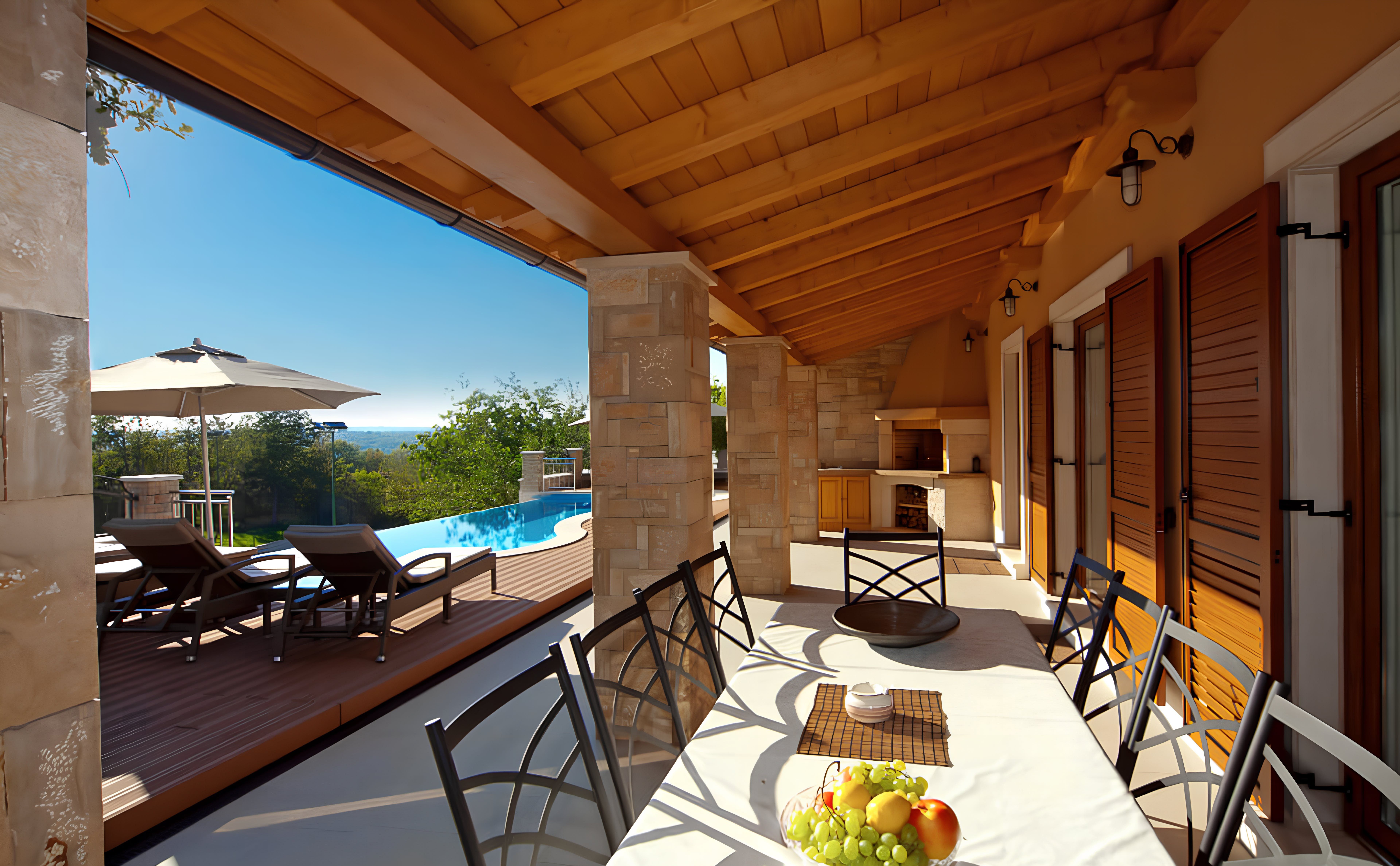 This is a luxurious Istrian estate that seamlessly blends tradition with modernity. The manor house was built in 1921 and renovated in 2011 to create a fabulous vacation home on an insanely beautiful estate that offers every luxury and comfort. The communal living areas are open and cosy with a high standard of furnishings and an open fireplace. The entire interior is decorated in beautiful earthy colors with natural materials like stone, wood, and artifacts from local artists. There is a large eat-in kitchen with a huge dining area and top-equipped appliances. The villa has four bedrooms, each with its own en-suite bathroom, TV, safe, air conditioning, underfloor heating, and balcony or terrace access. The outdoor area has a great shaped pool, private tennis court, small 7-hole practice golf course, covered terrace with outdoor fireplace/grill, and organic kitchen garden. The friendly owner lives next door and will be happy to give you advice and tips for excursions in the area or a fresh fruit plate of the fruits grown here. Labin is less than 1 km away while Rabac offers a wide range of gastronomy, sports, and entertainment.